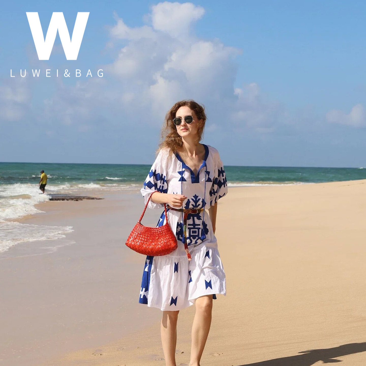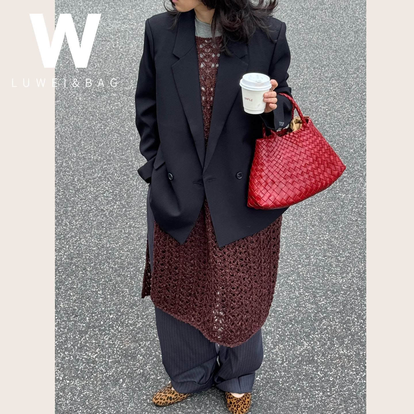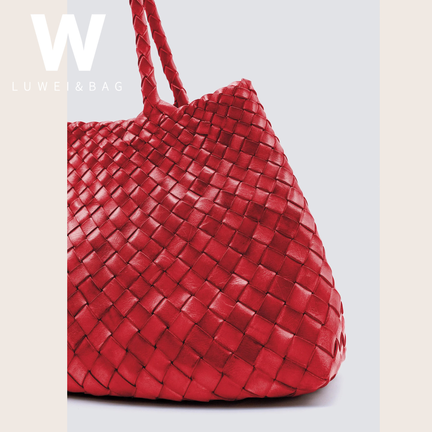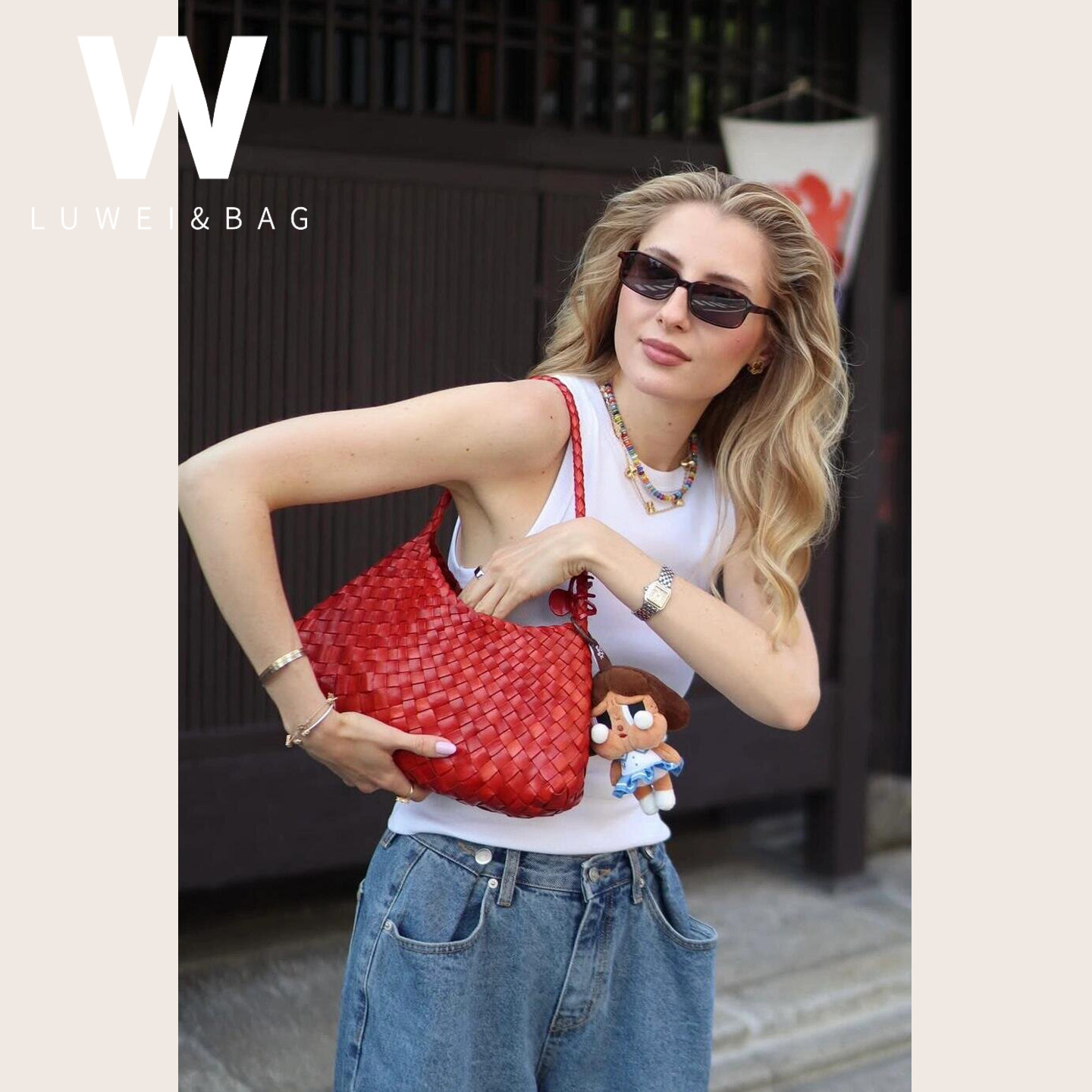 dragon红色编织包女真皮小众法式单肩包2025新款高级感通勤手提包
