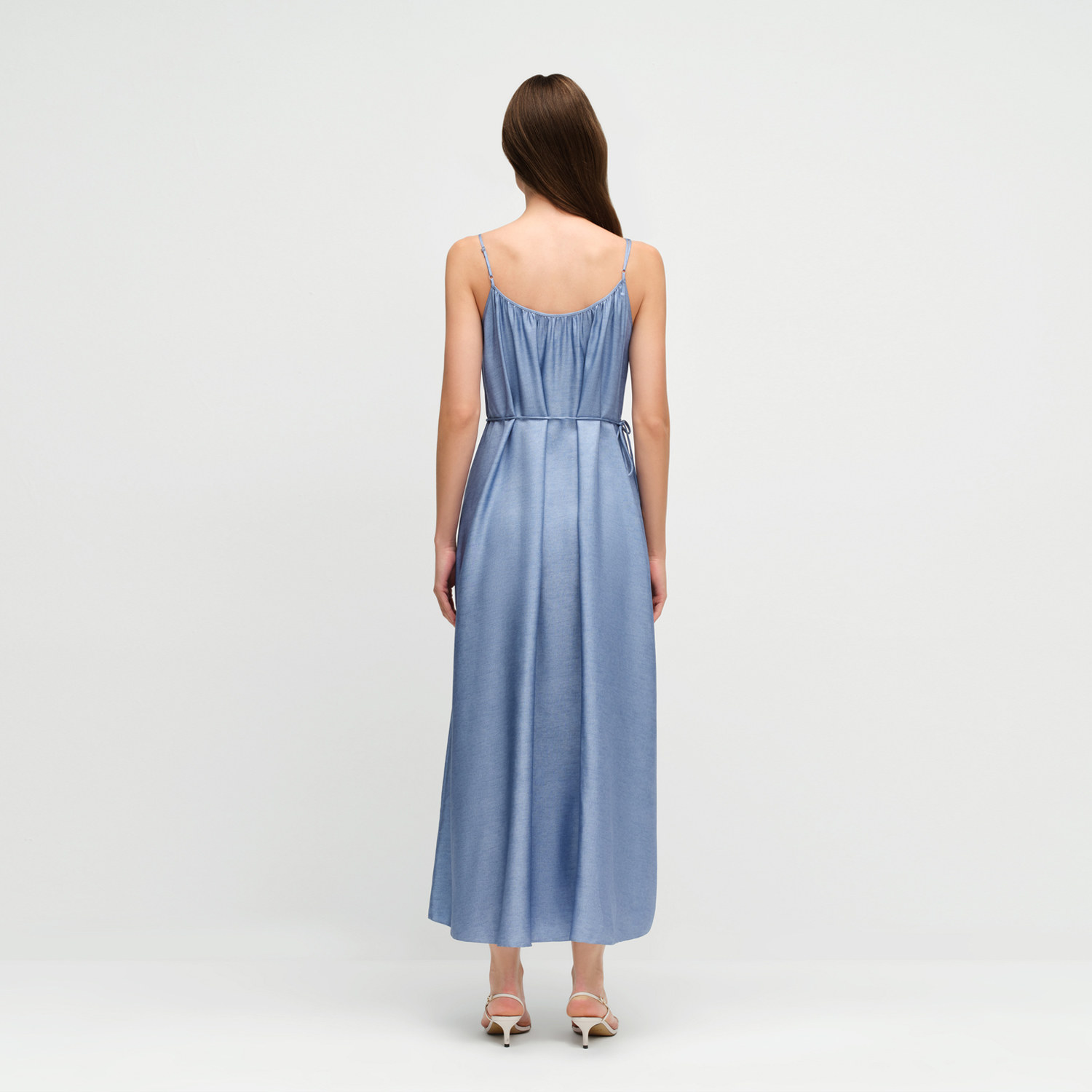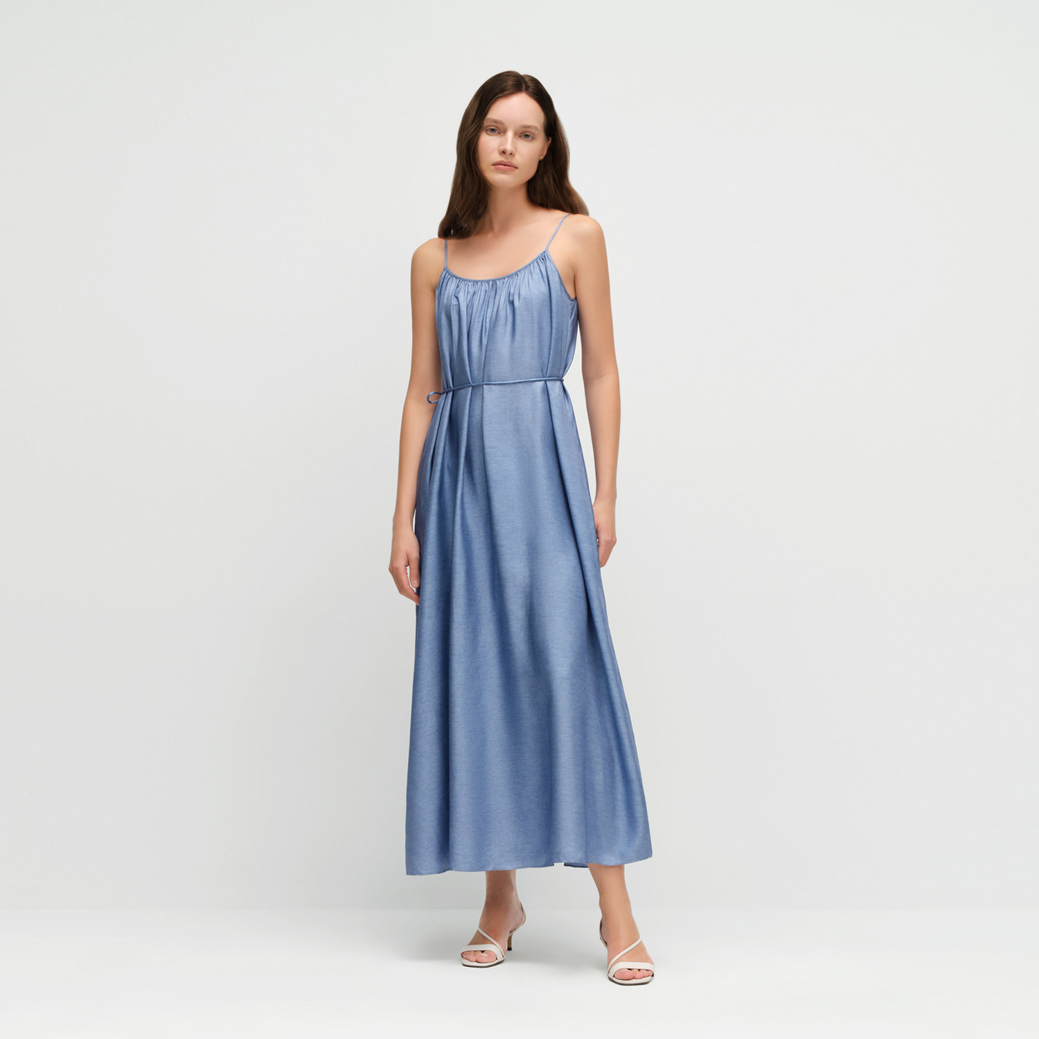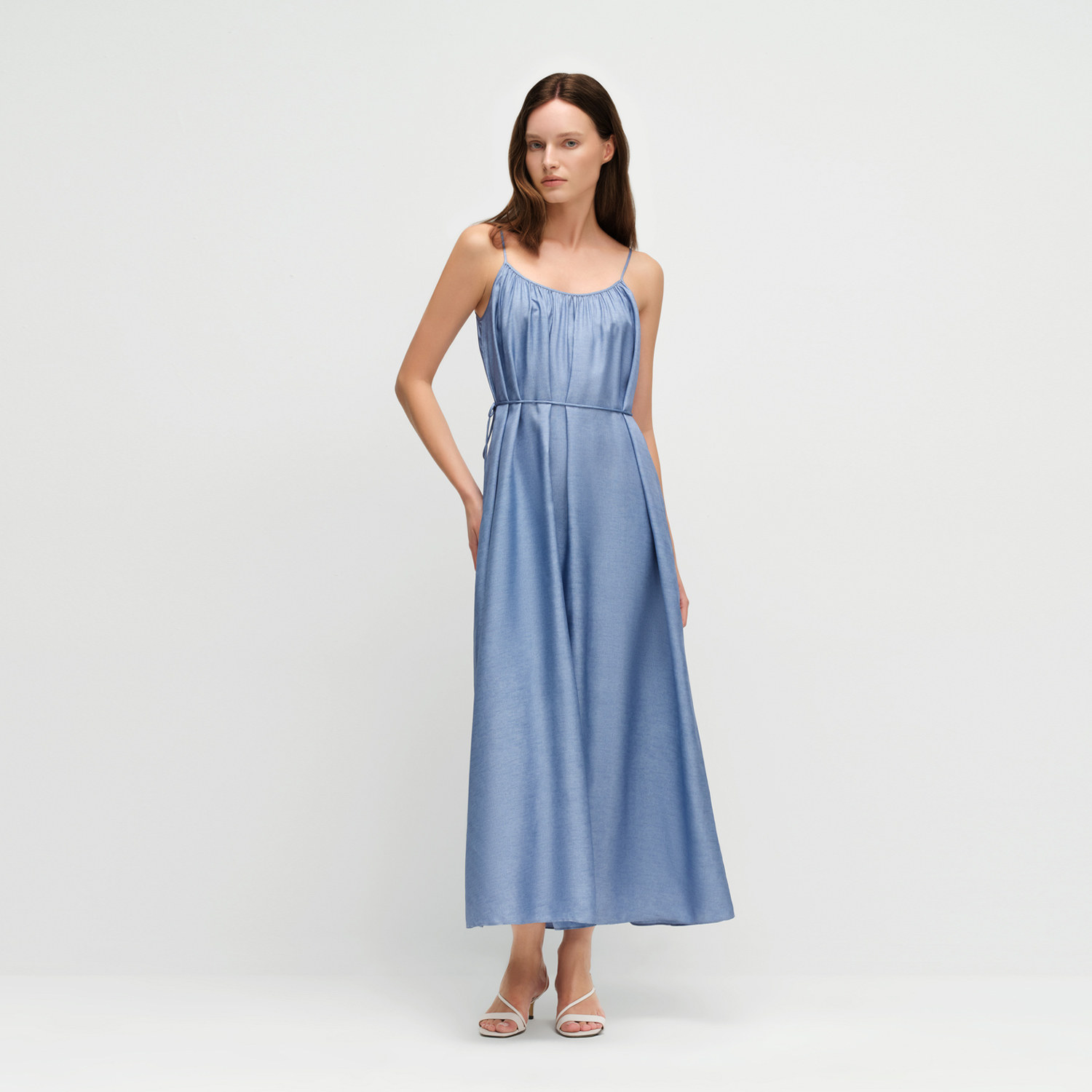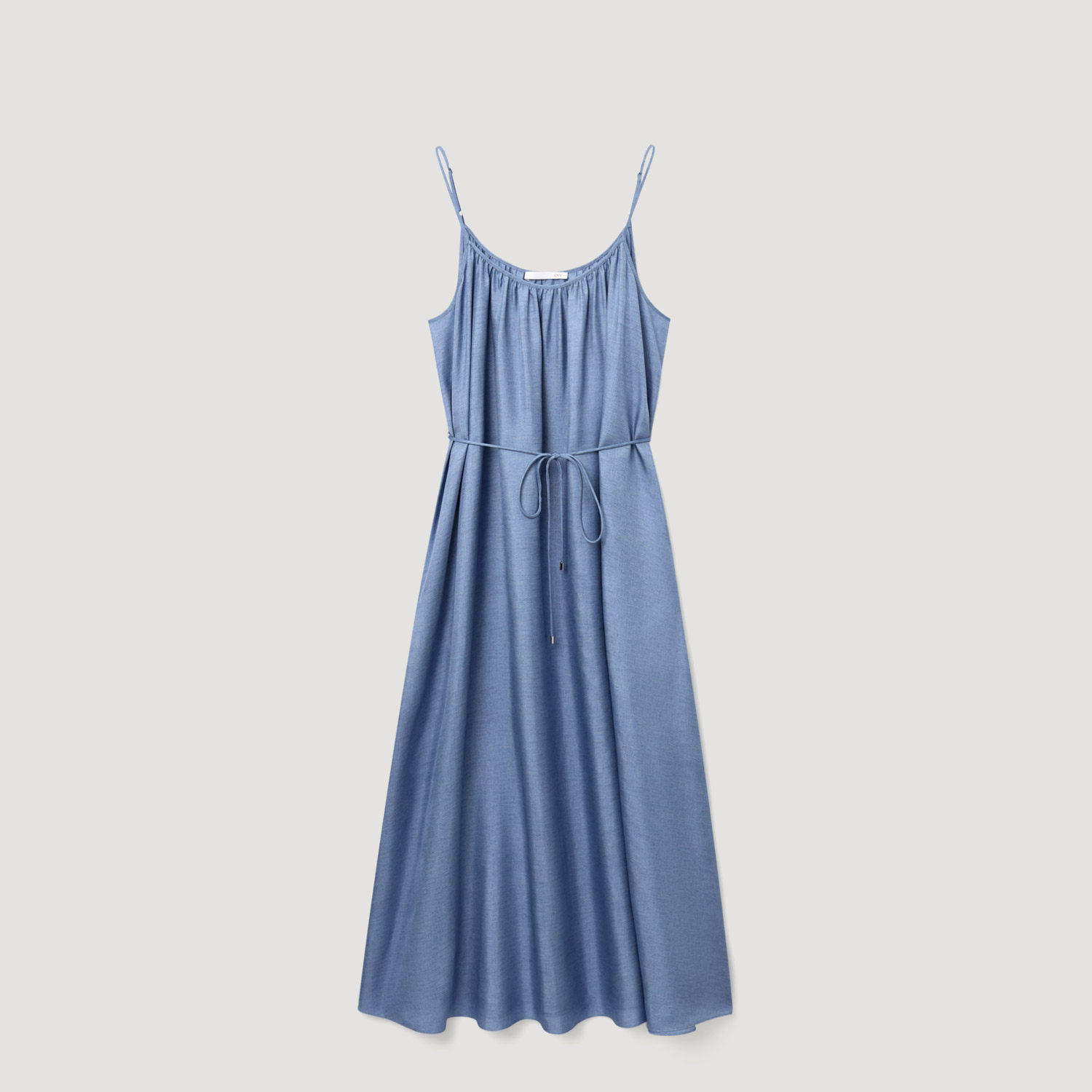 OVV2025春夏新款女装18MM斜纹真丝仿牛仔印花吊带连衣裙
