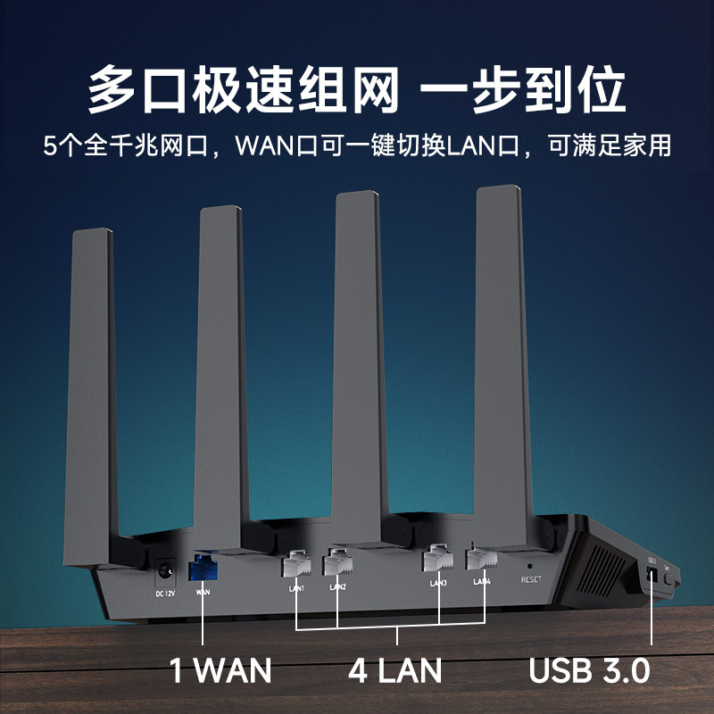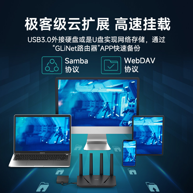 glinet AX1800路由器家用高速千兆wifi6旁路由双频无线多网口nas网络存储带USB端口