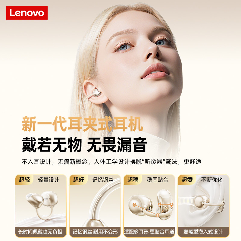 联想气骨传导蓝牙耳机无线耳夹式高音质超长续航运动跑步2026新款