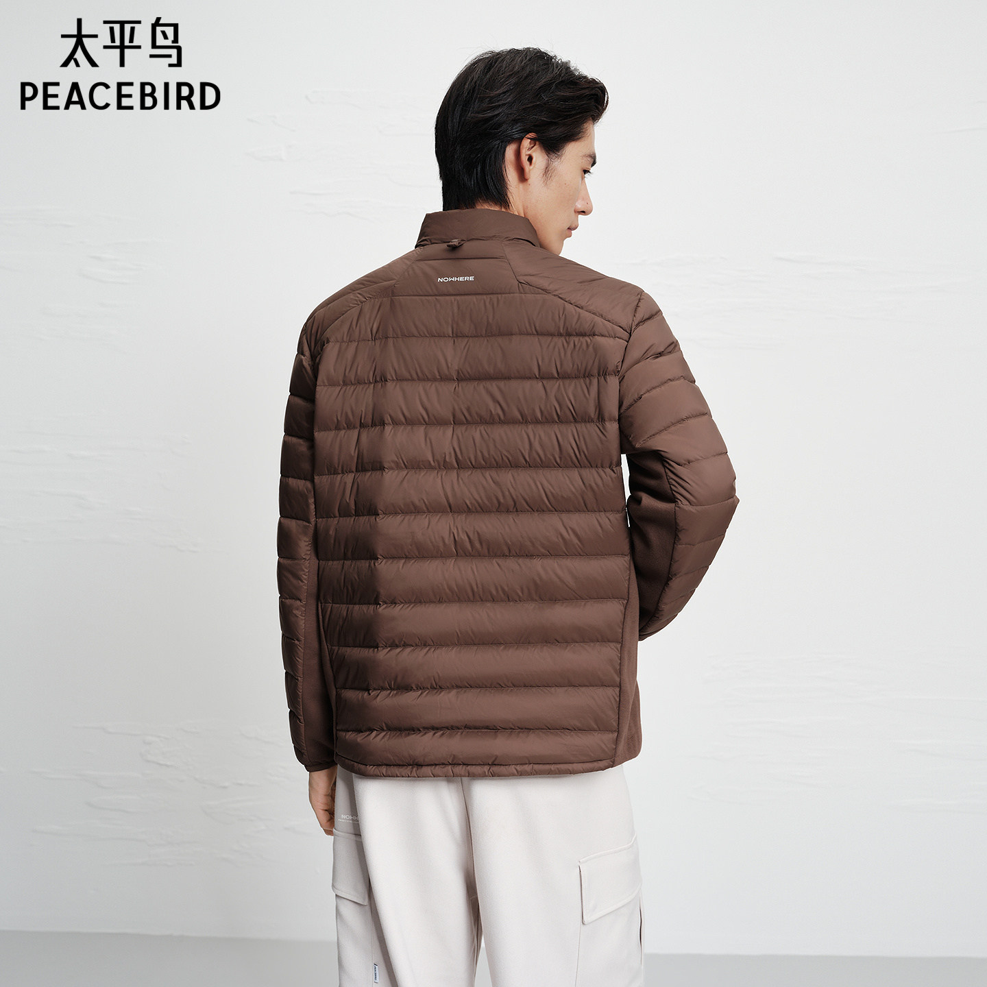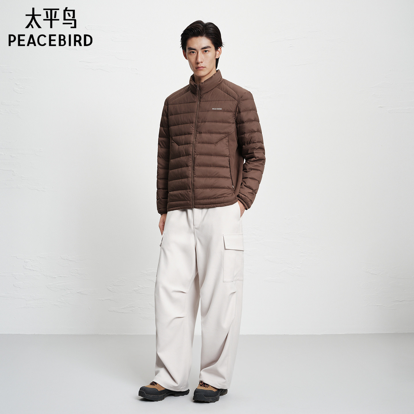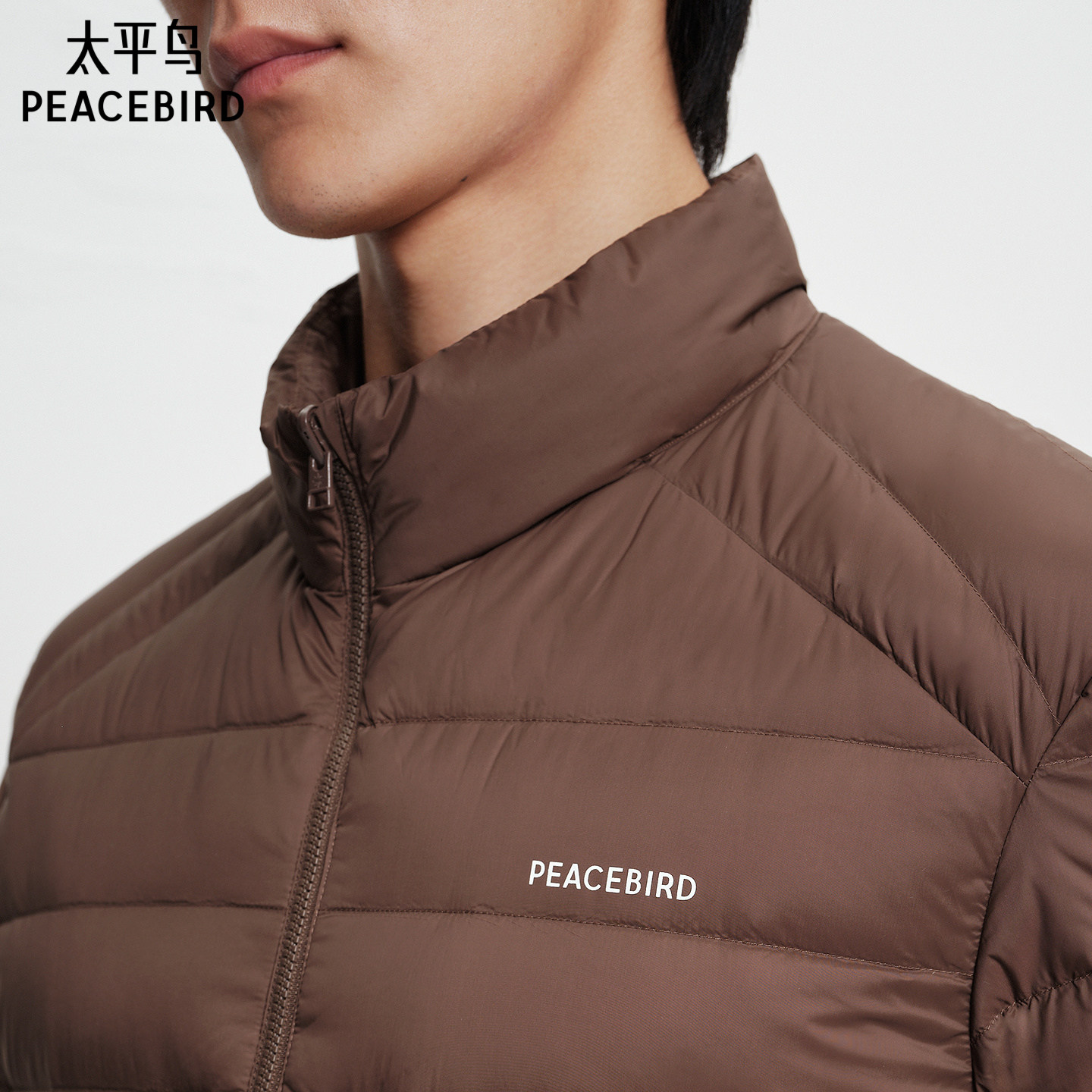 太平鸟男装立领排骨羽绒服冬季印花保暖轻薄质感羽绒外套