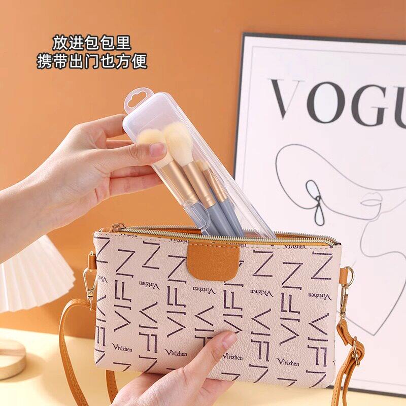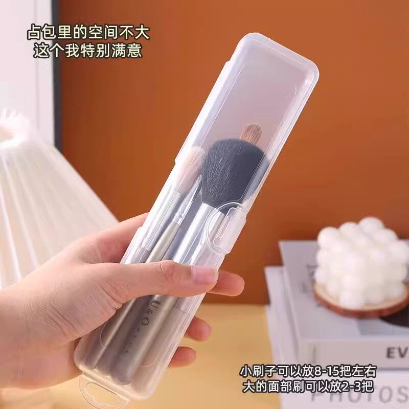 旅行外出便携化妆刷子收纳眼影刷美甲笔透明盒眉笔防尘带盖收纳盒