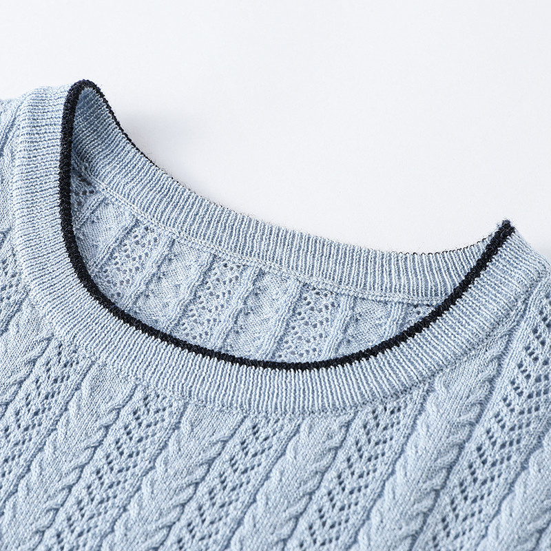 LAGOGO薄荷音律镂空刺绣针织衫女拉谷谷2026夏季新款显白蓝色上衣