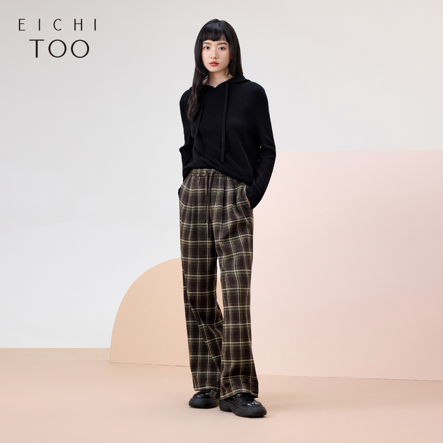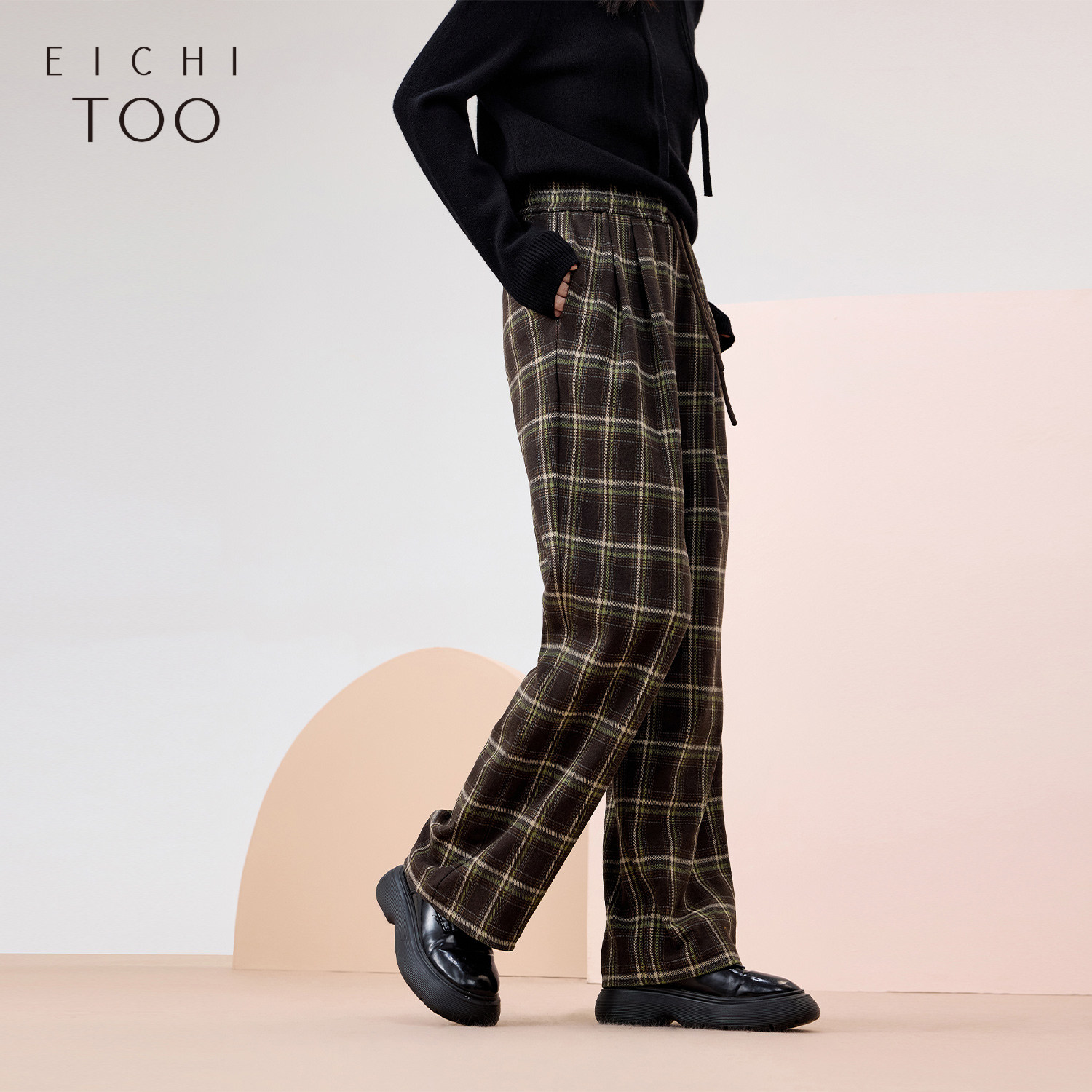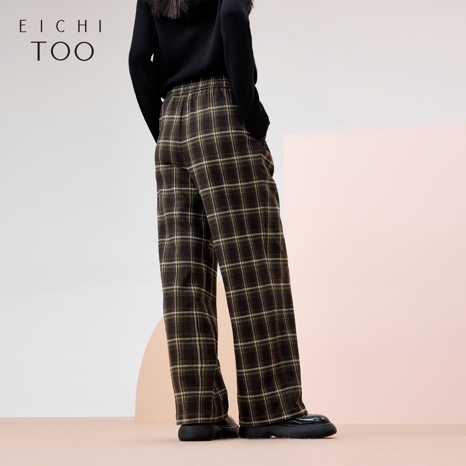 爱居兔经典格纹裤子女冬季新款宽松时尚阔腿裤