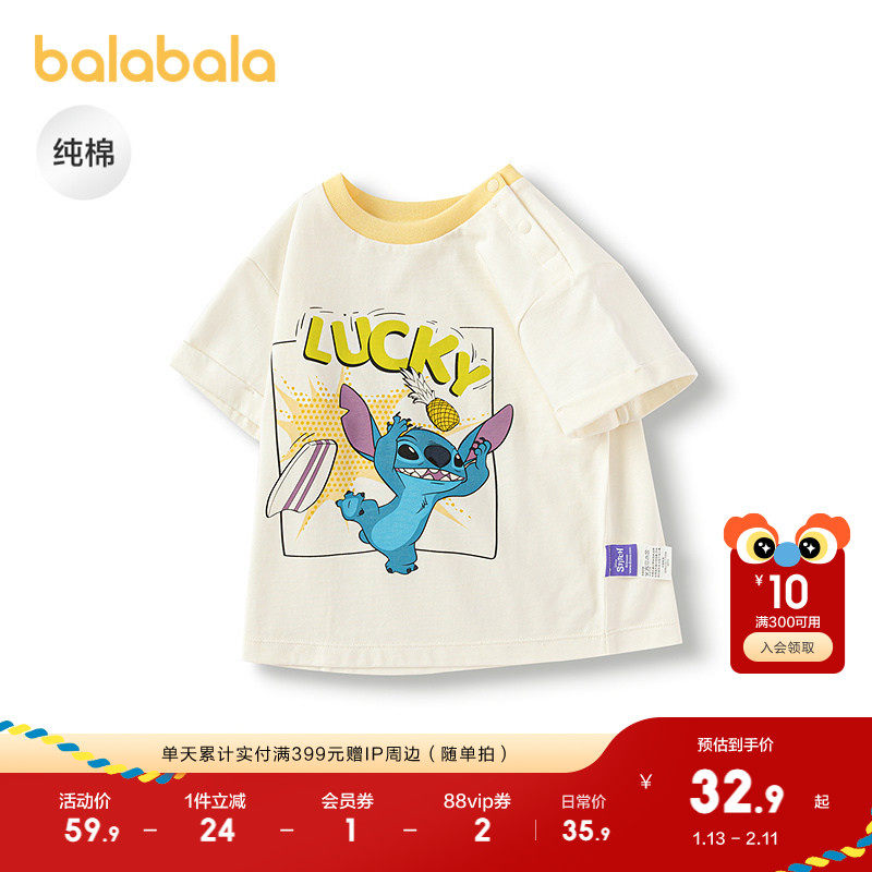 【迪士尼IP】巴拉巴拉婴儿短袖t恤宝宝半袖上衣男女童夏装25新款