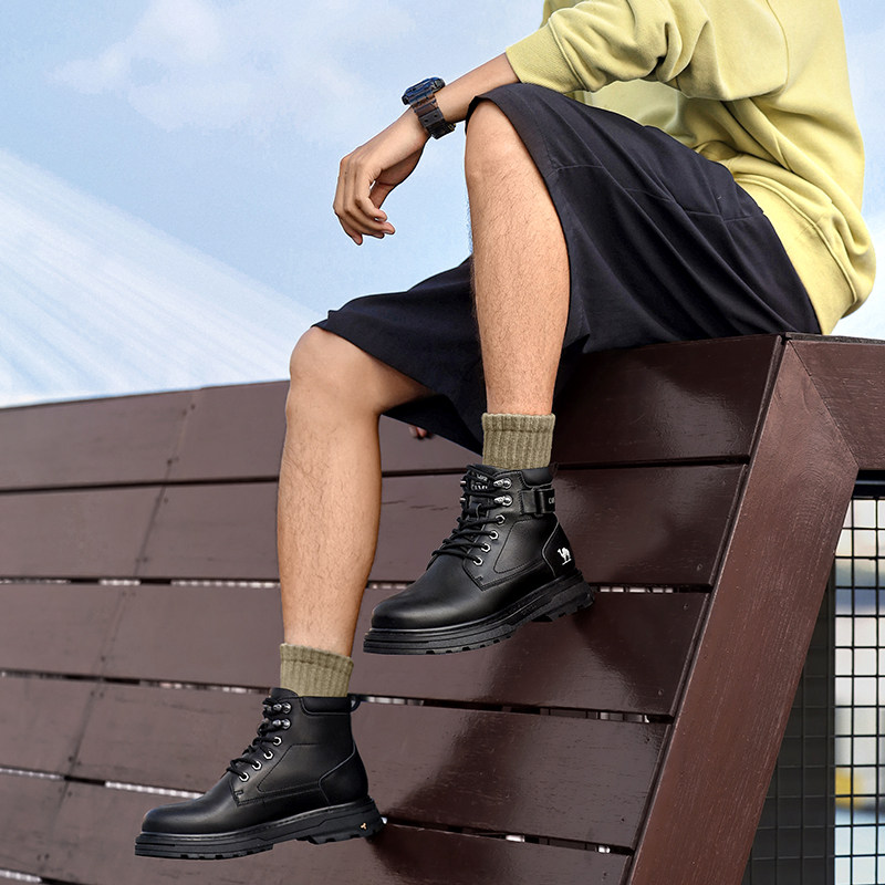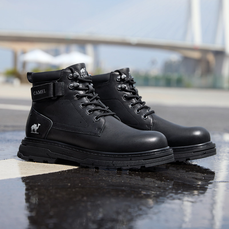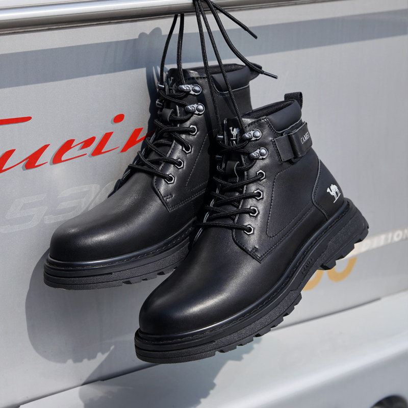 骆驼男鞋秋冬季马丁靴油蜡牛皮舒适增高厚底城市户外复古工装靴子