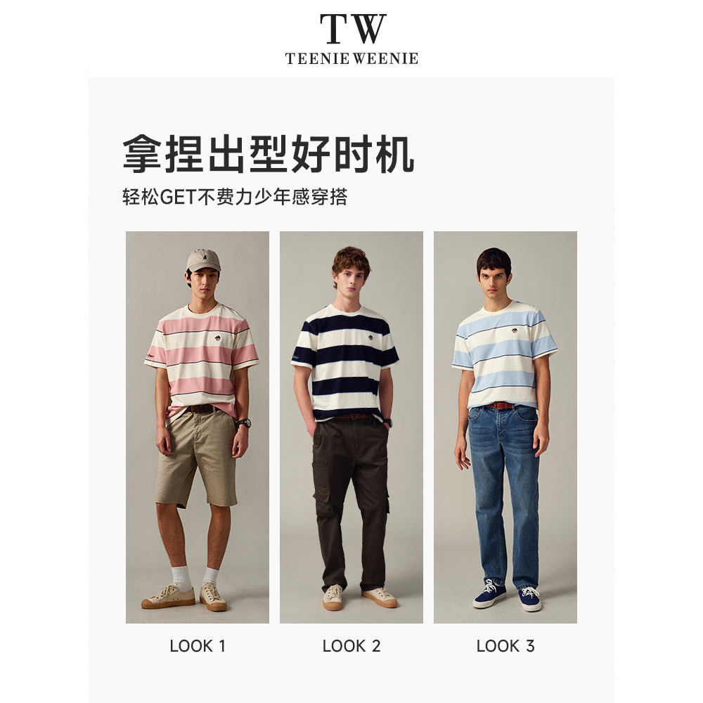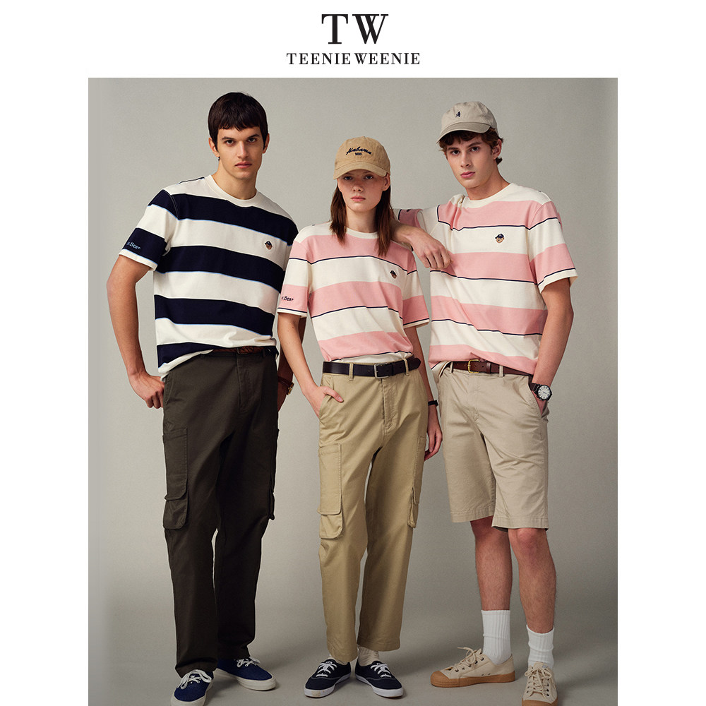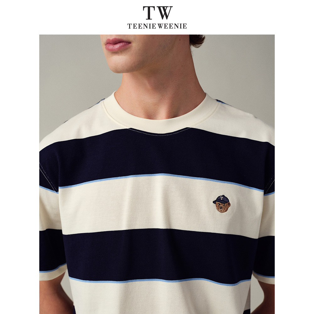 TeenieWeenie小熊男装情侣条纹撞色纯棉宽松短袖美式t恤百搭