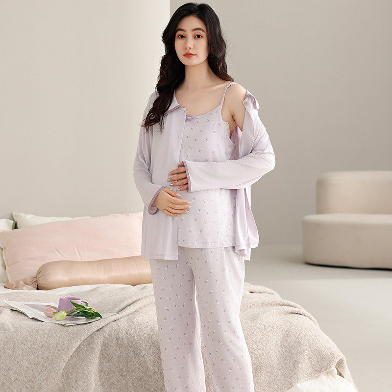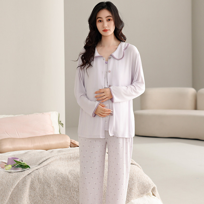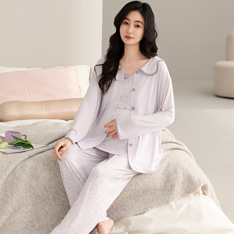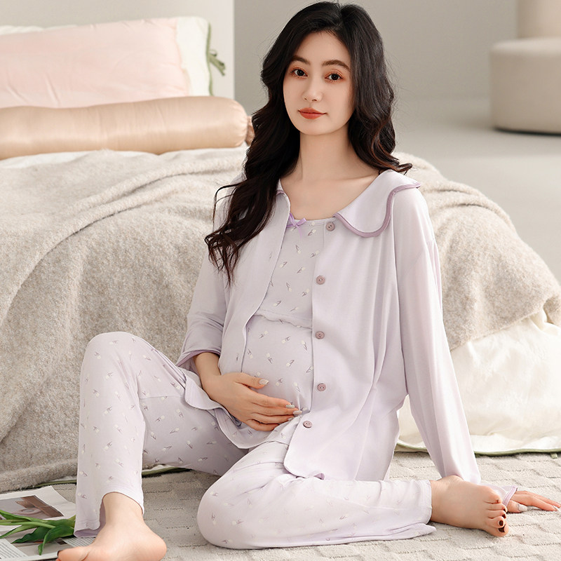 秋冬季空气棉月子服三件套春秋纯棉产后孕妇睡衣哺乳产妇12月份11