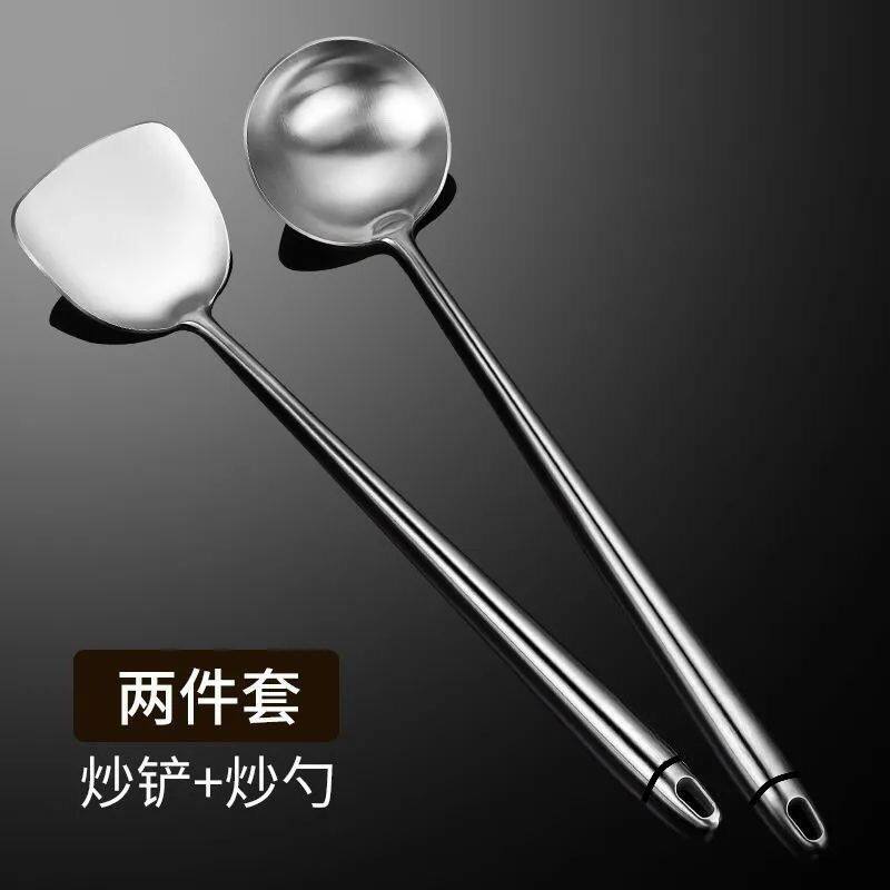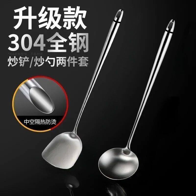 304不锈钢锅铲家用锅铲 加长防烫炒菜铲子加厚大汤勺长柄炒勺套装