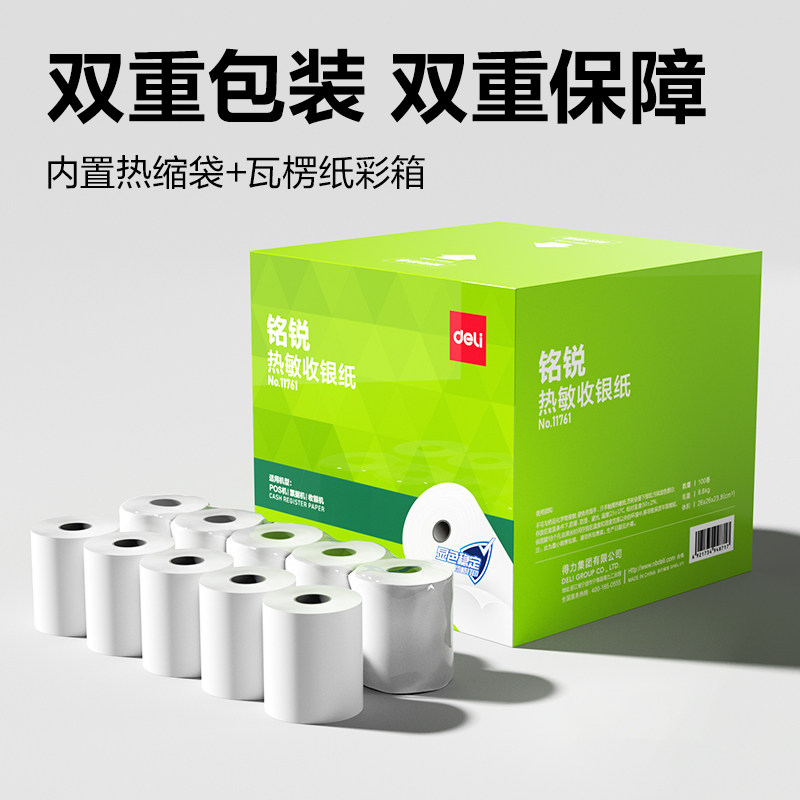 得力热敏收银纸57x50打印纸80x80热敏纸卷纸80x60整箱收银机58mm美团外卖机餐厅超市票据纸后厨房80mm小票纸