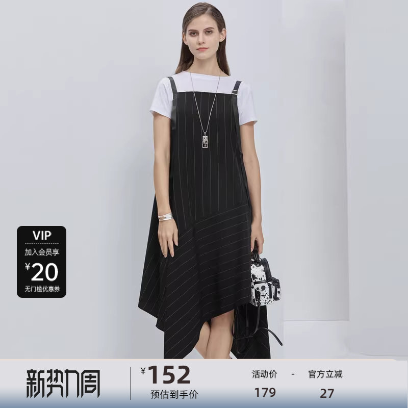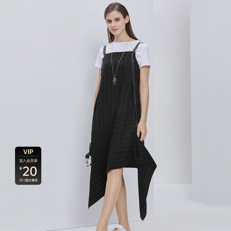 【裙子清仓99元起】半练带胸垫连衣裙秋季打底背心裙黑白吊带裙子