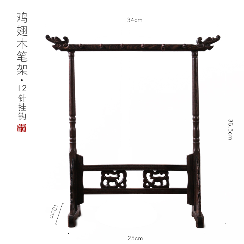 【雨晨】鸡翅森笔架毛笔挂12针毛笔架笔挂学生文房四宝复古挂毛笔的笔架毛笔挂实木套装初学龙头笔架毛笔挂架