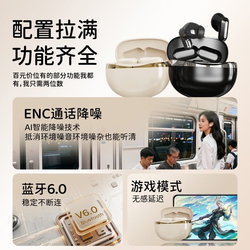 音贝奇Real1Pro无线蓝牙耳机主动降噪入耳式2026新款高音质长续航