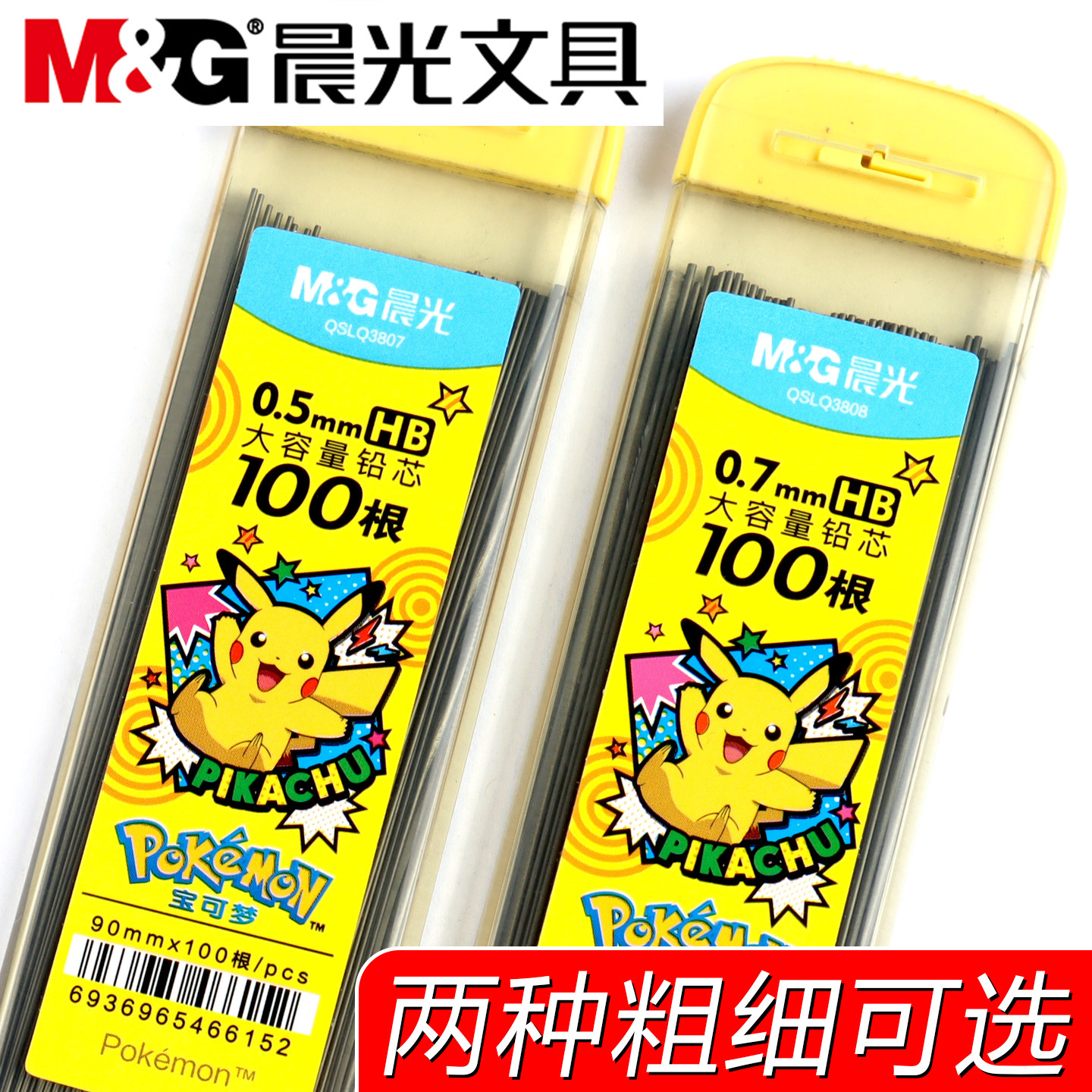 晨光文具日本宝可梦皮卡丘联名0点5自动铅笔芯0.5mm活动铅笔2比圆规替换芯细0.7mm铅芯hb不断芯通用小学生用