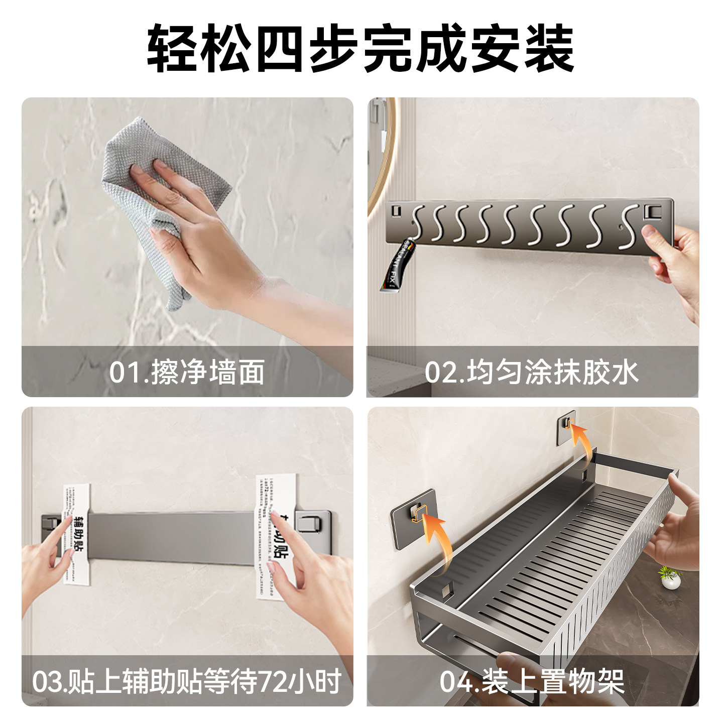 百悍置物架角篮卫生间浴室免打孔卫浴收纳架卫浴架挂架壁挂转角