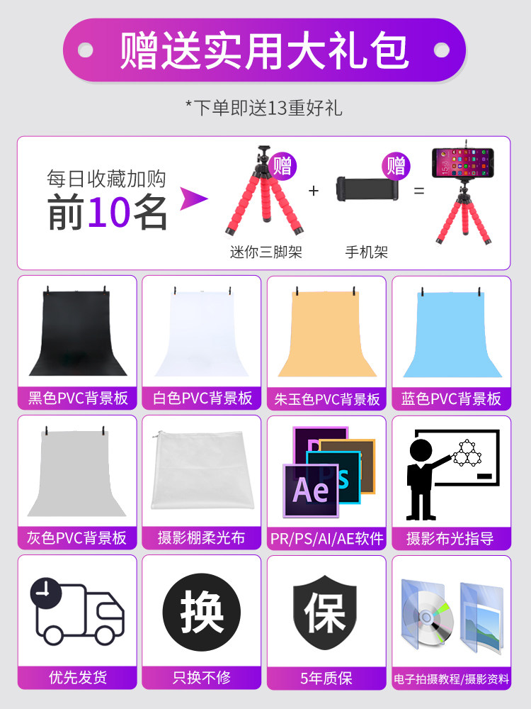 春影摄影棚小型产品拍摄拍照灯箱设备静物补光灯柔光无影棚led折叠手机专用电商室内拍摄专业饰品背景摄影箱