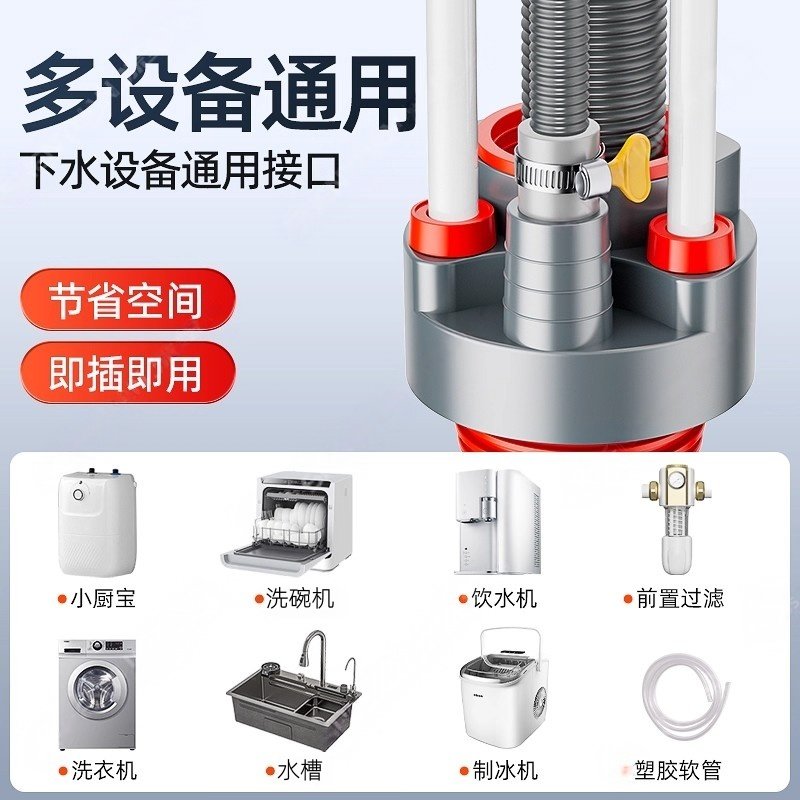 厨房下水管三头通水槽排水管分水器洗碗机净水器下水道防返臭神器