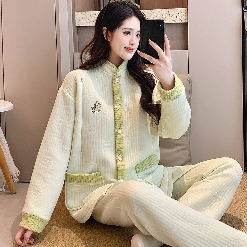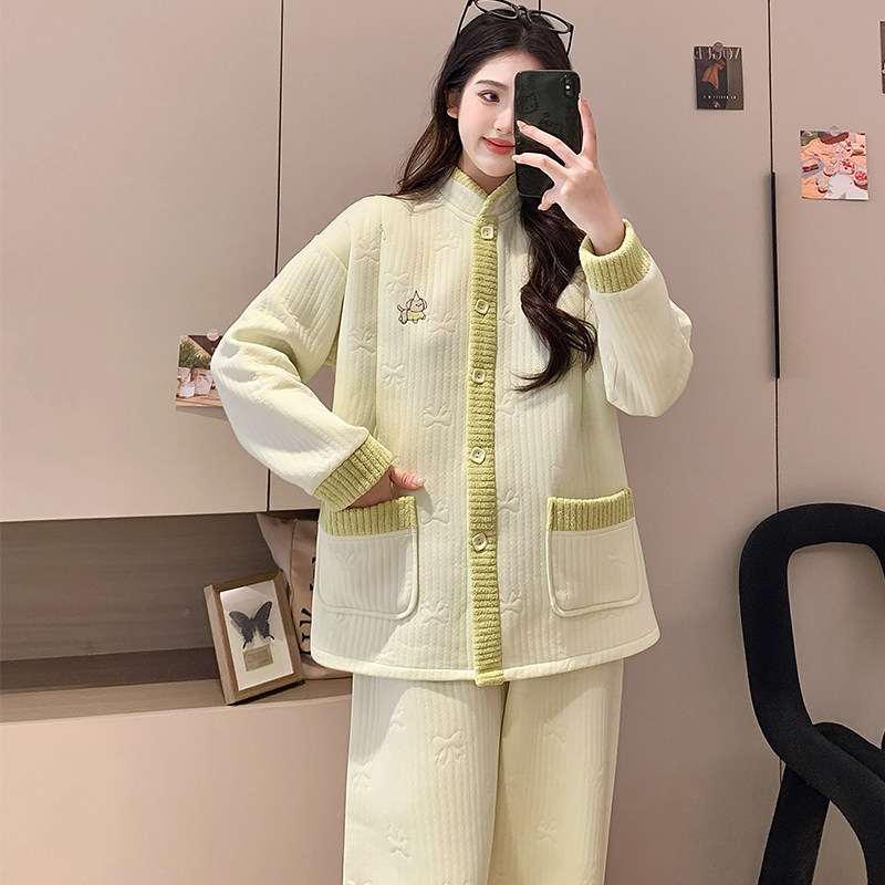 婧麒月子服秋冬产后空气棉加厚孕妇睡衣哺乳产妇待产喂奶家居服