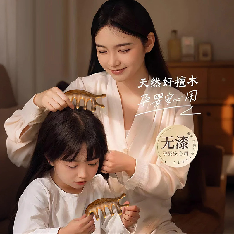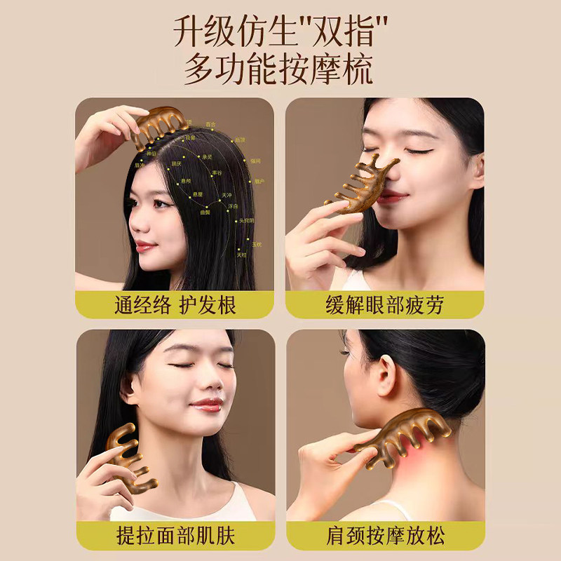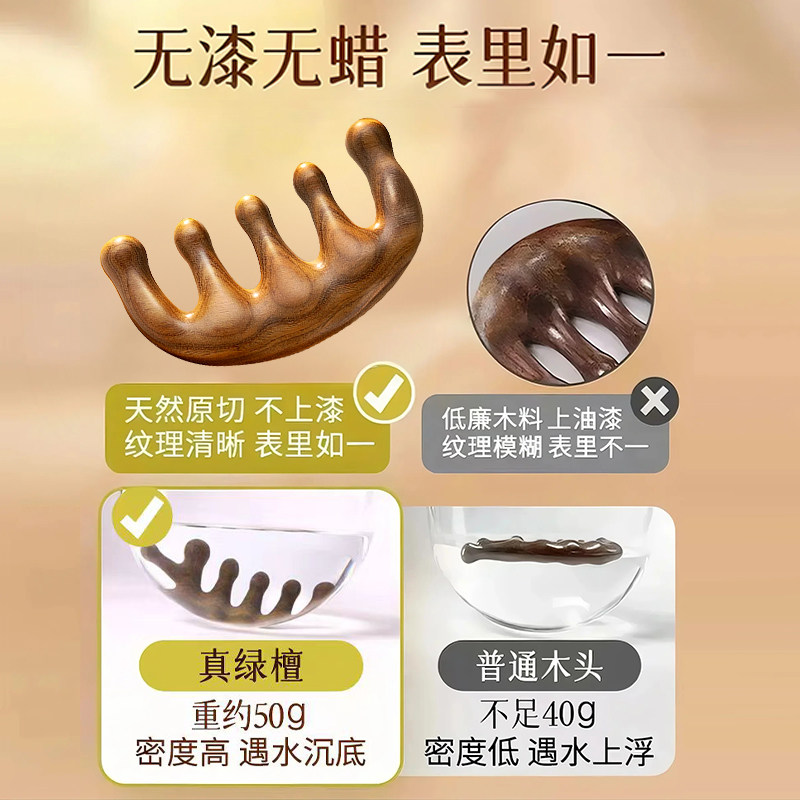 天然檀木按摩梳经络头皮养发梳子头疗防脱发头部疏通刮痧五齿神器