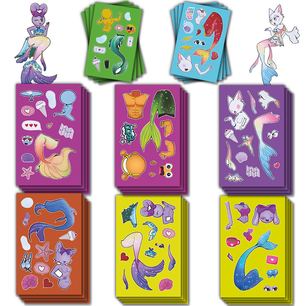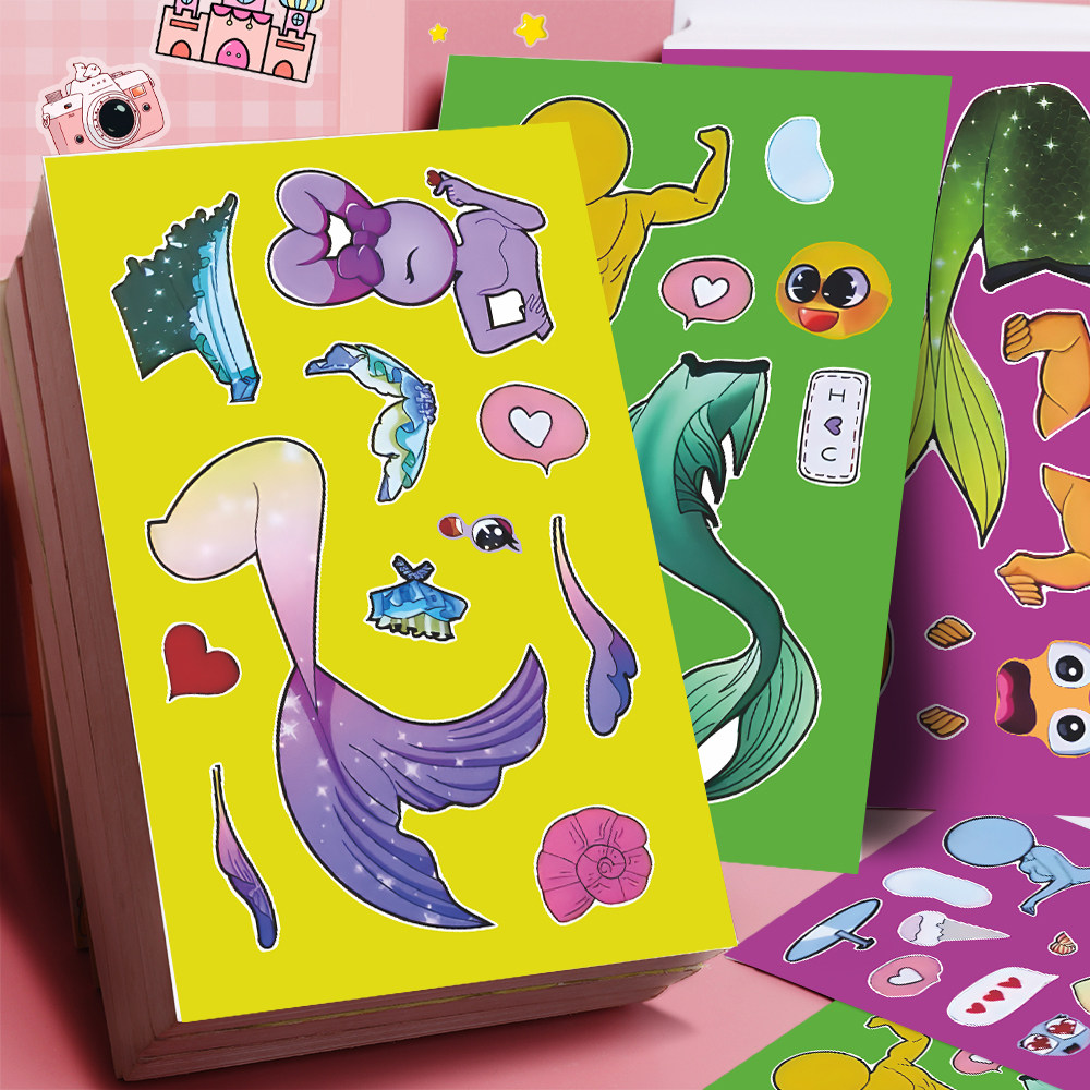 大张版】节奏盒子人鱼装扮精美换装贴纸儿童益智diy手工创意贴画