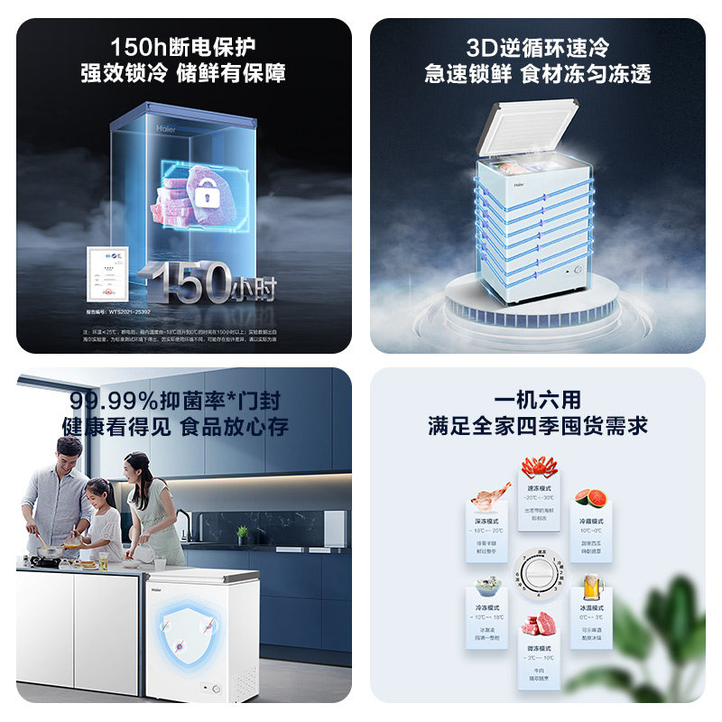海尔haier100/142/200升冰柜小型家用型冰箱一级冷藏冷冻节能冷柜
