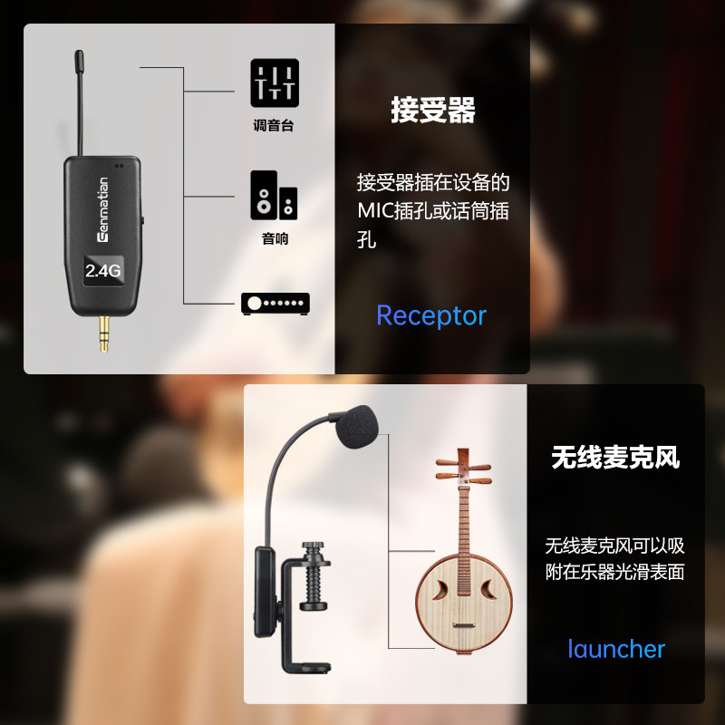 森玛田中阮无线拾音器中提琴拾音麦克风专业演奏级话筒录音扩音