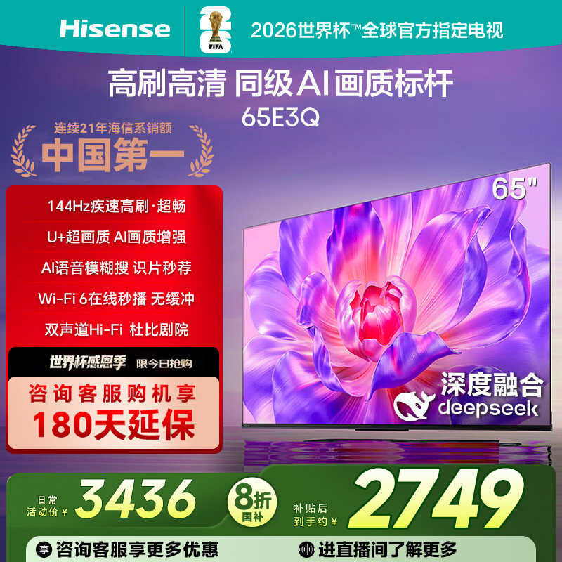 海信电视65E3Q 65英寸 AI智能高刷MEMC防抖 液晶家用以旧换新补贴