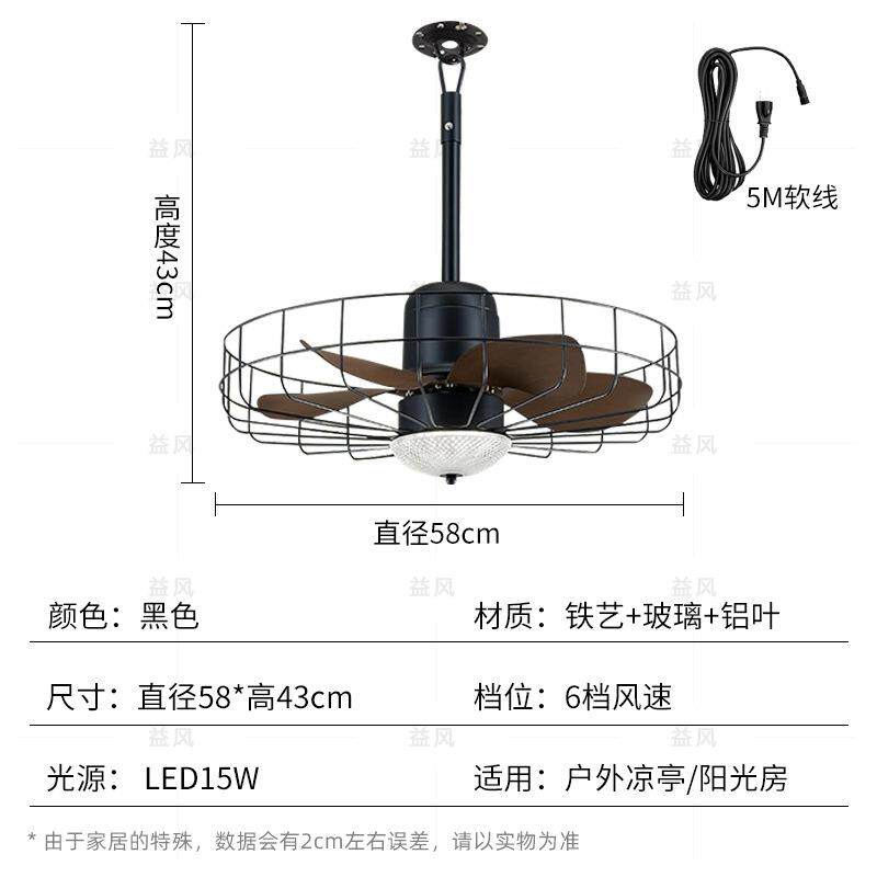 亚马逊户外防晒吊扇灯笼式凉亭阳光房风扇灯挂钩电风扇灯智能遥控