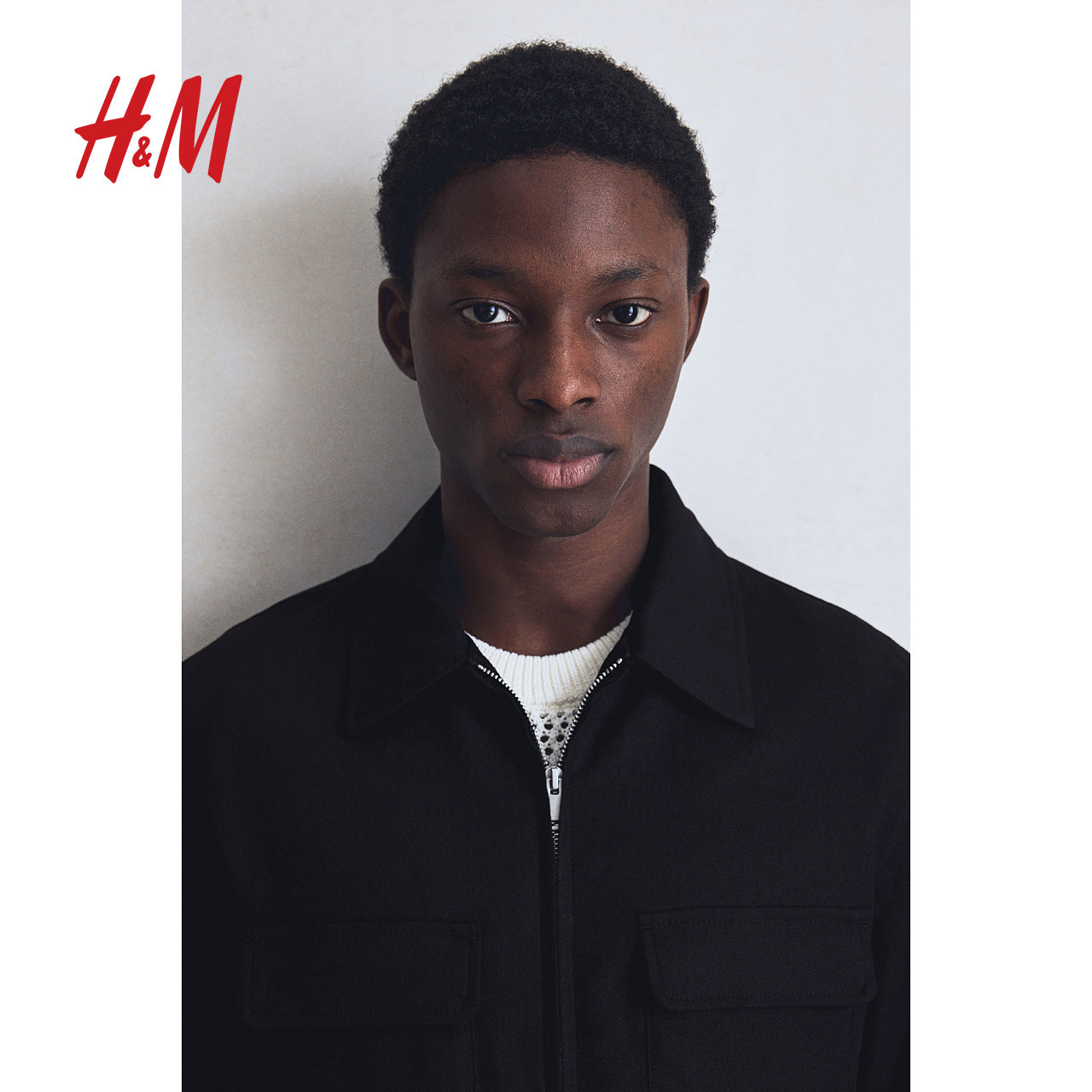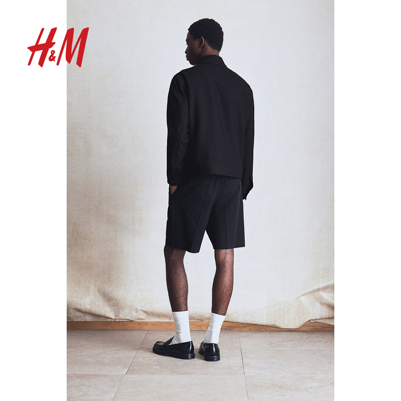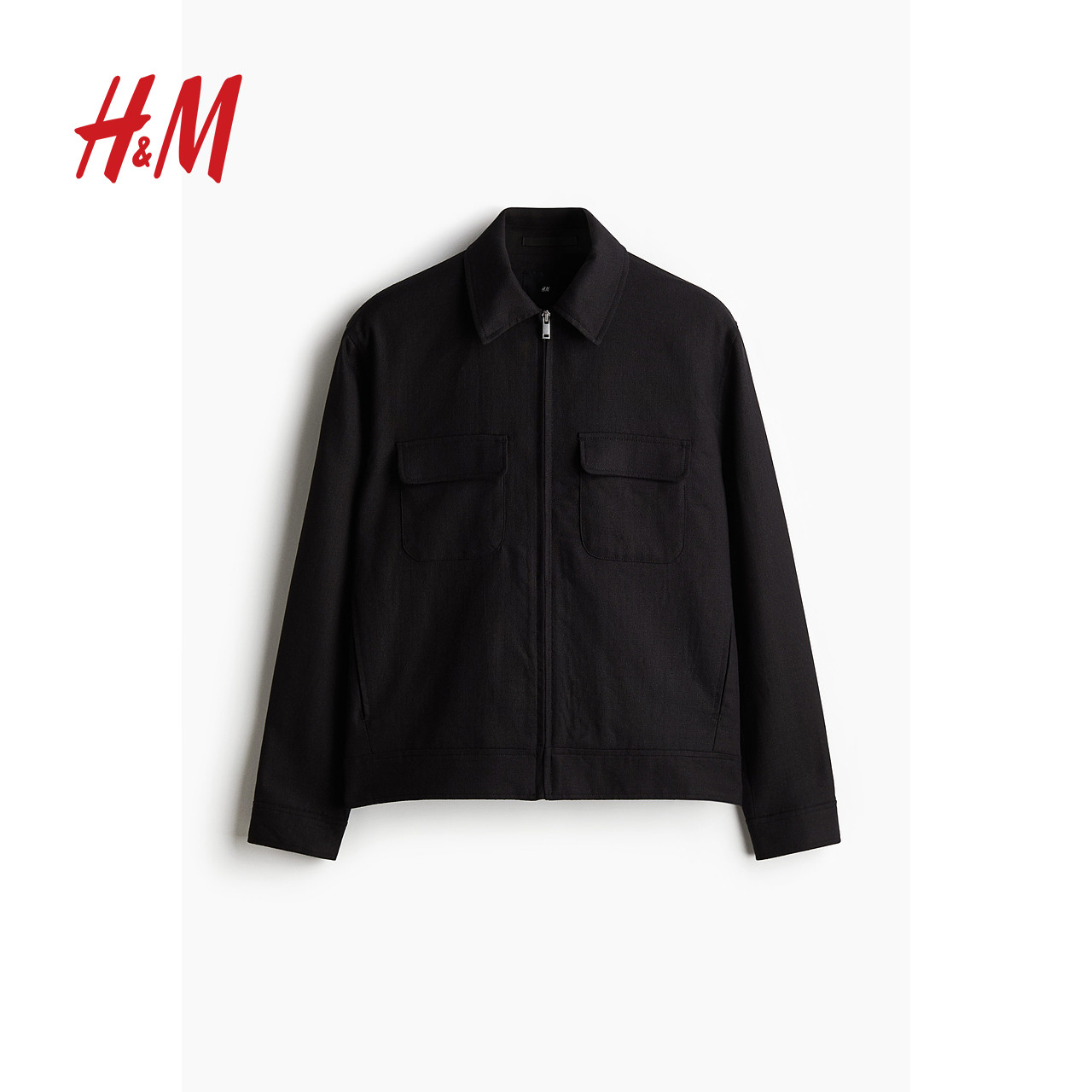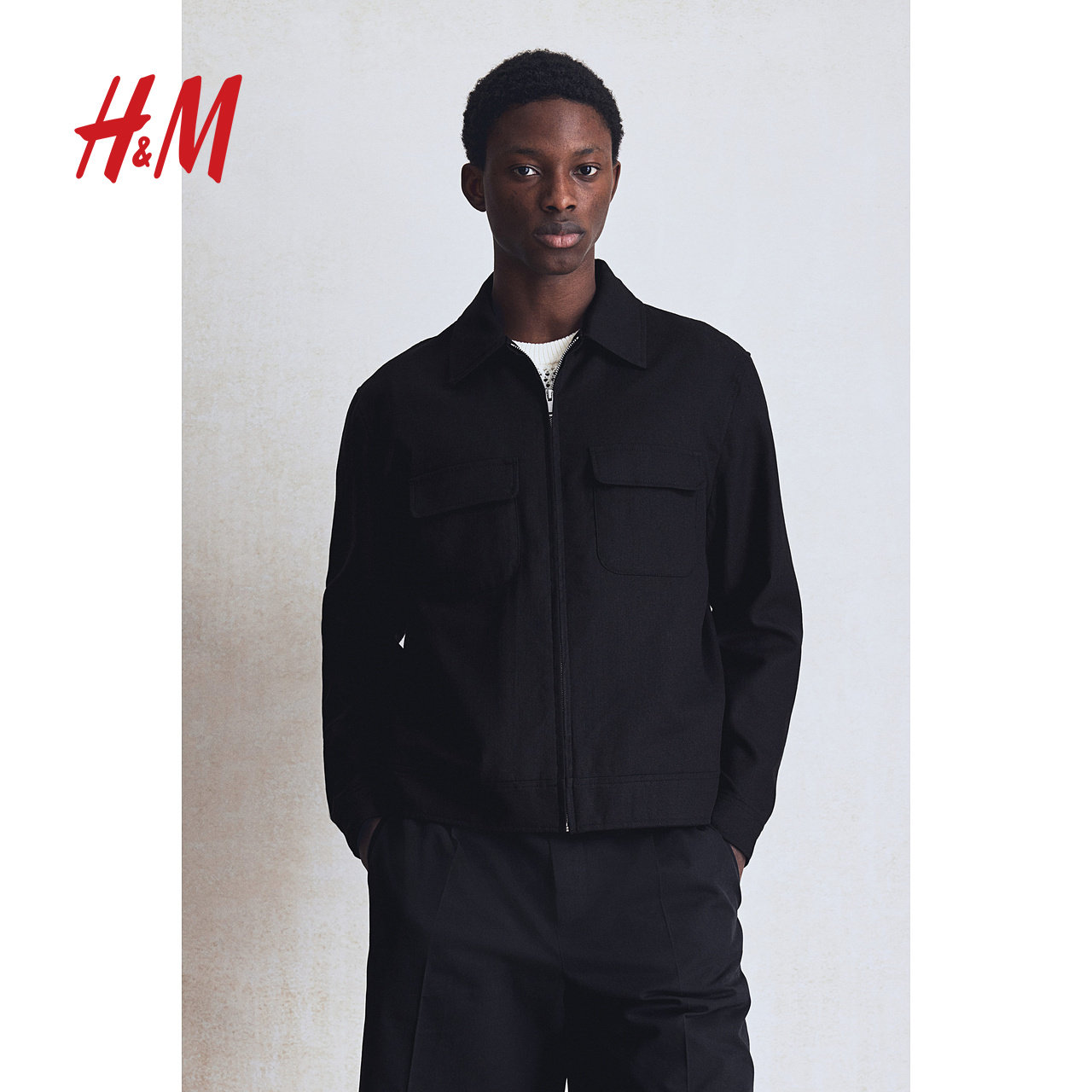 HM男装夹克2025冬季新款简约亚麻混纺cleanfit翻领夹克1262241