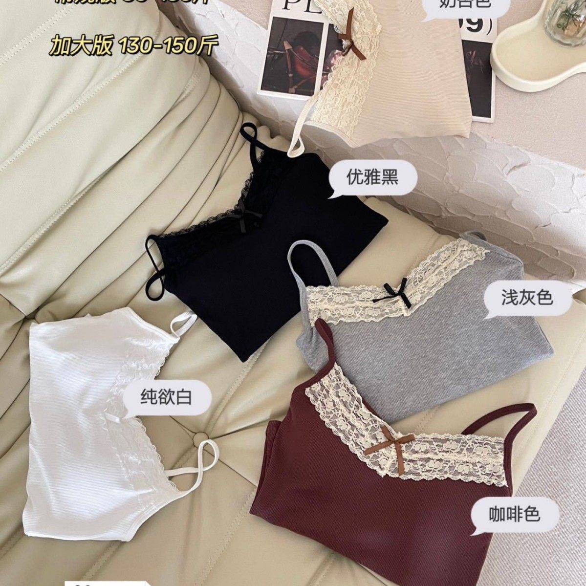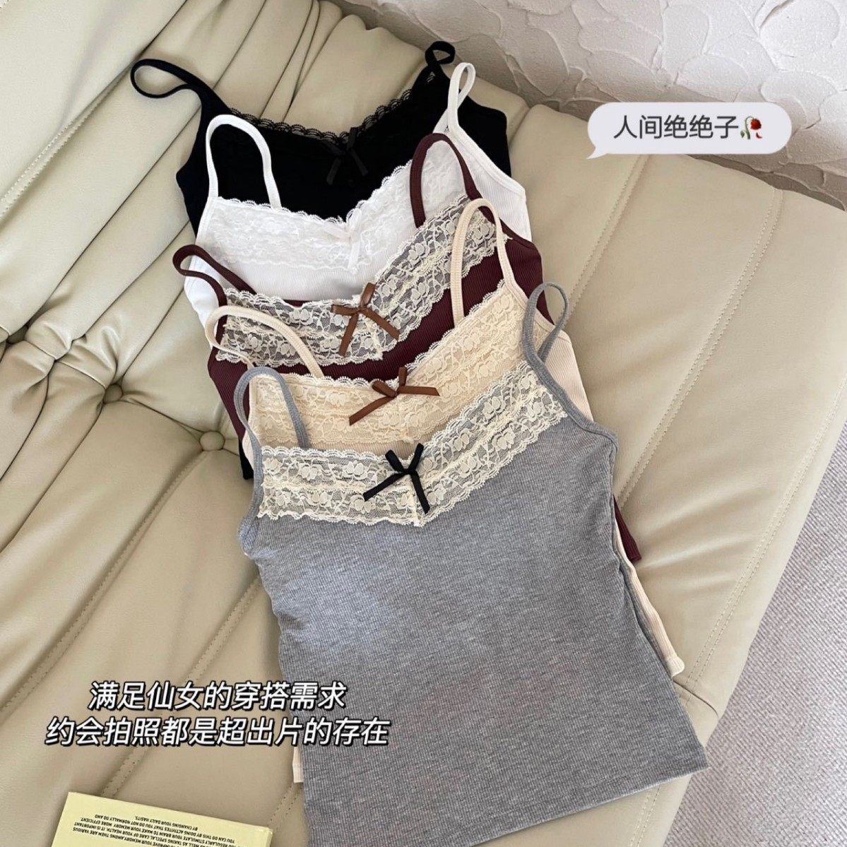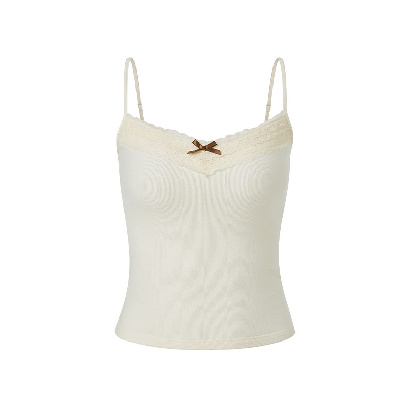 法式带胸垫内搭小吊带背心女春装外穿纯欲蝴蝶结蕾丝打底白色上衣