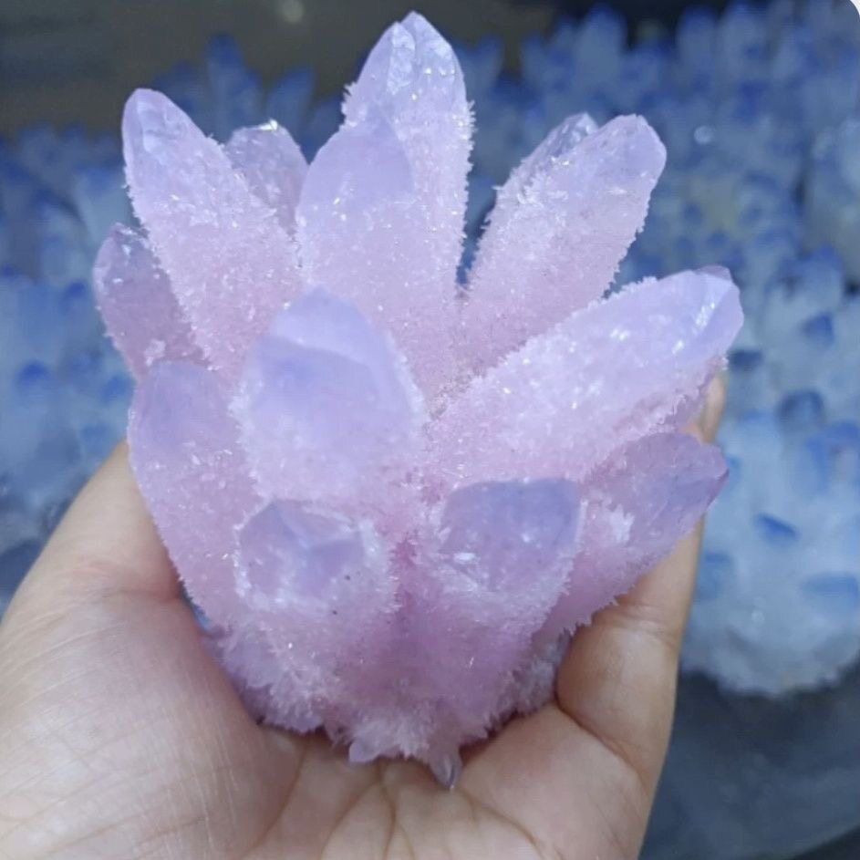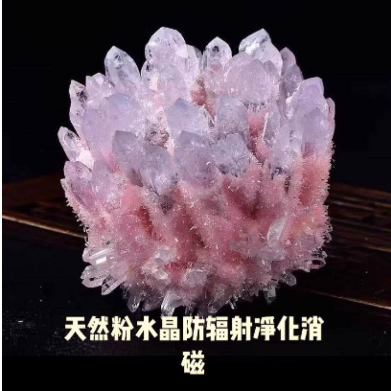 VZZS天然粉水晶簇原石消磁充能家居客厅办公摆设开业乔迁送礼