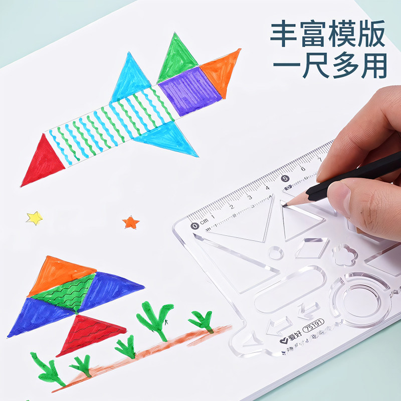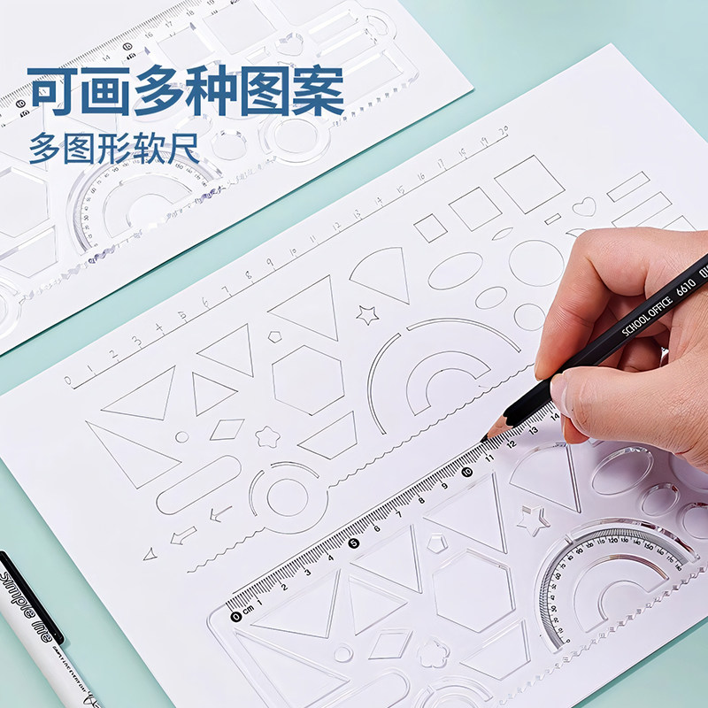 爱好多图形软尺中小学生几何图形绘图尺套装尺子万花尺手抄报模板专用百变画图绘画图软直尺镂空工具神器文具