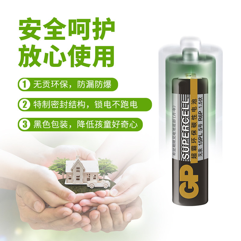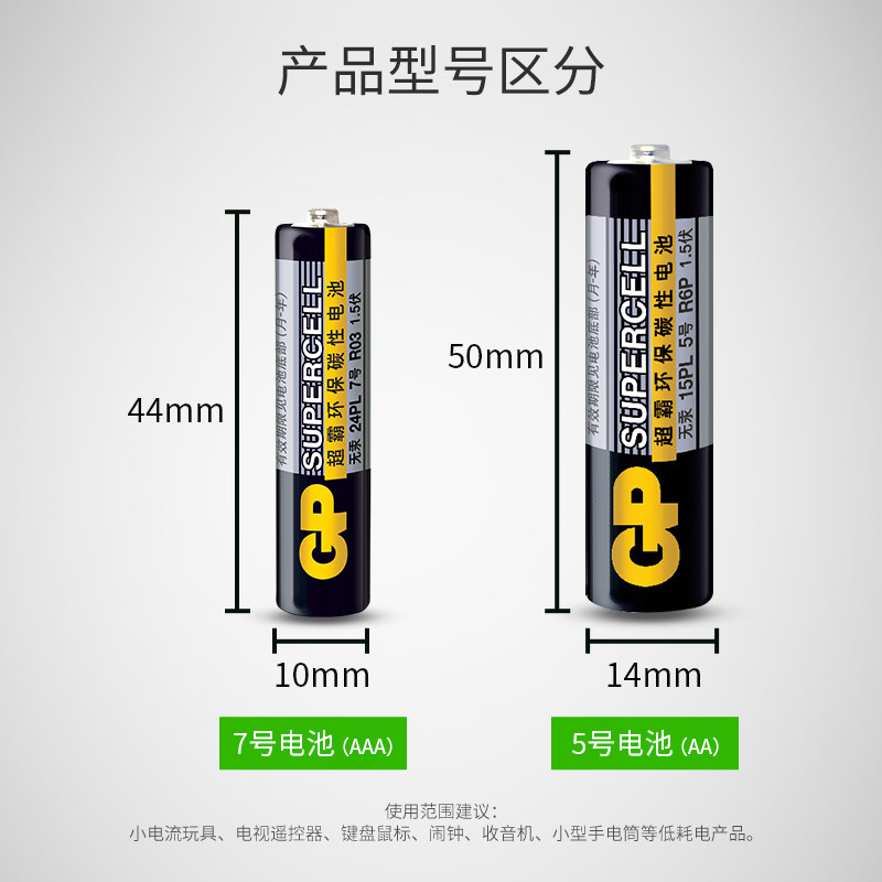 GP超霸5号7号高性能碳性电池1.5V无汞环保五号七号干电池大全空调电视遥控器鼠标键盘闹钟挂钟耐用40粒