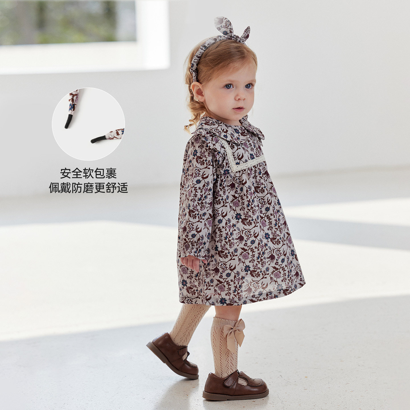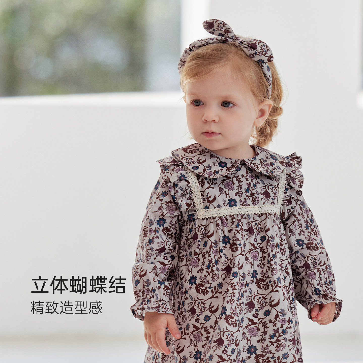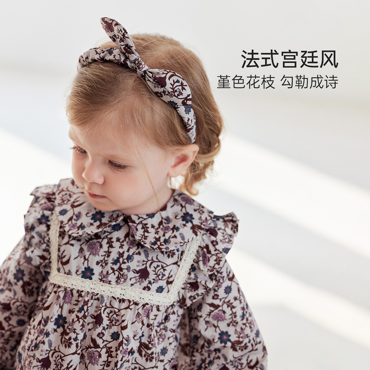 babylove女宝宝发饰蝴蝶结发箍婴儿法式碎花头饰外出发箍堇色花枝