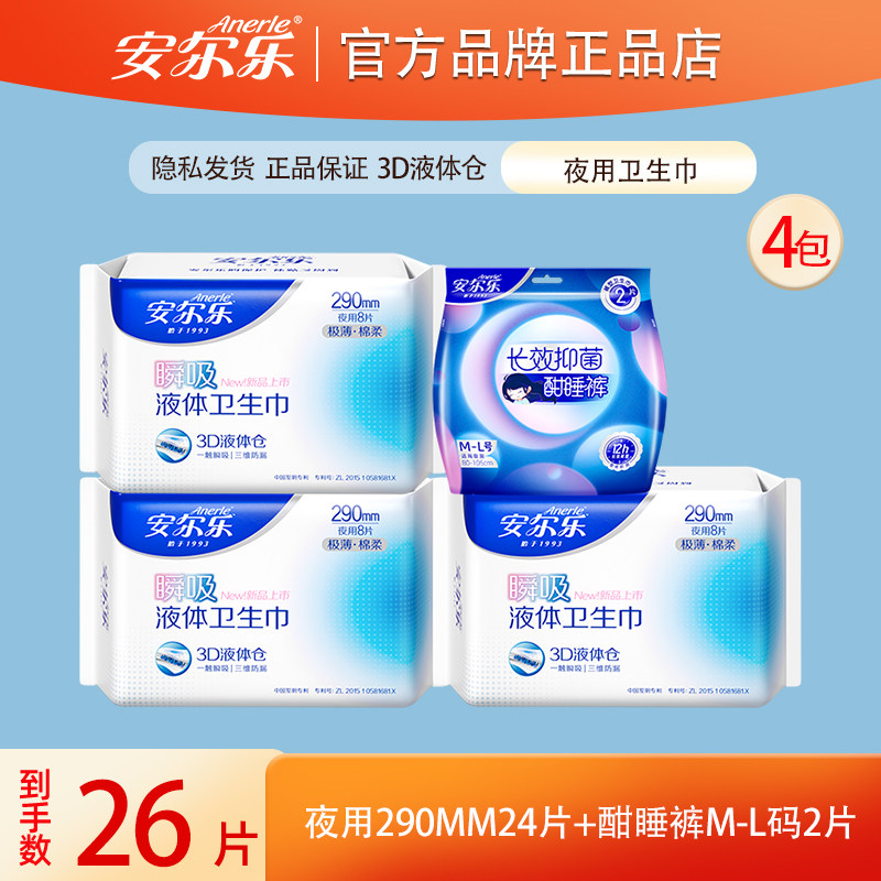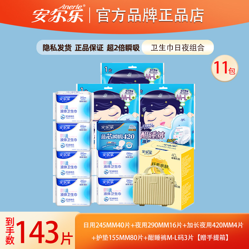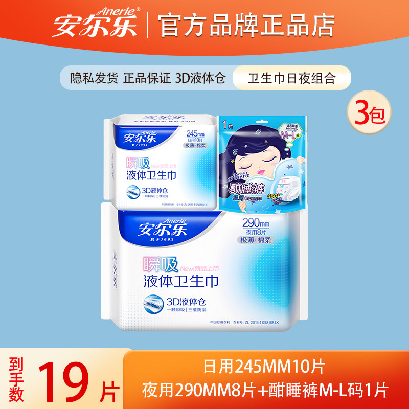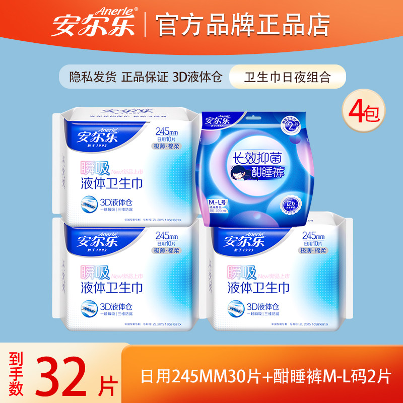 安尔乐卫生巾液体日夜组合姨妈巾正品夜用日用加长蓝芯瞬吸棉柔