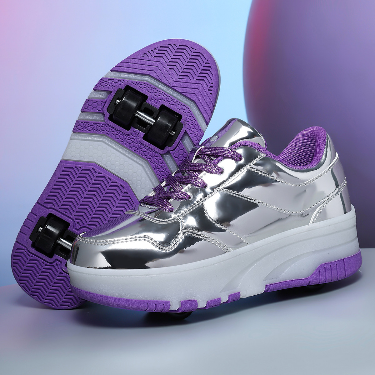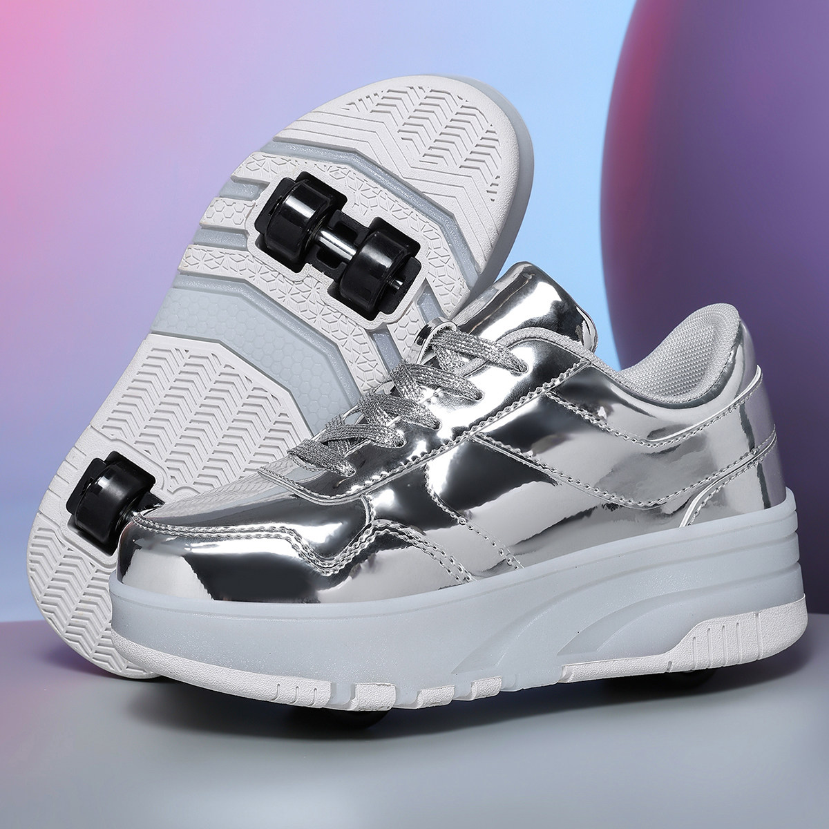迪森途新款时尚厚底轮滑鞋男女增高休闲百搭轮子鞋可拆卸潮鞋