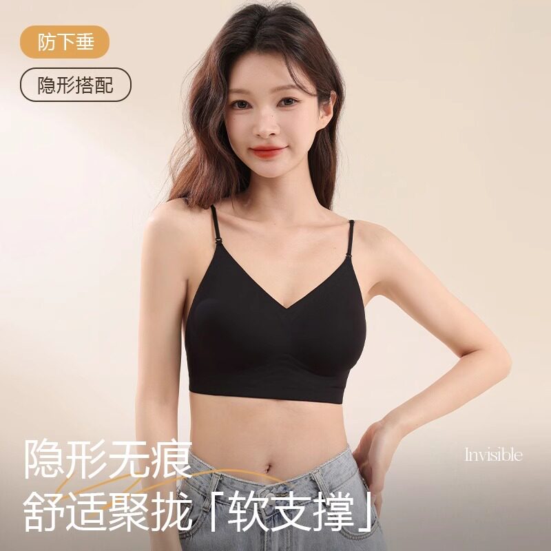 草本初色内衣女细肩带无痕夏季薄款大胸显小胸聚拢凉感无钢圈文胸