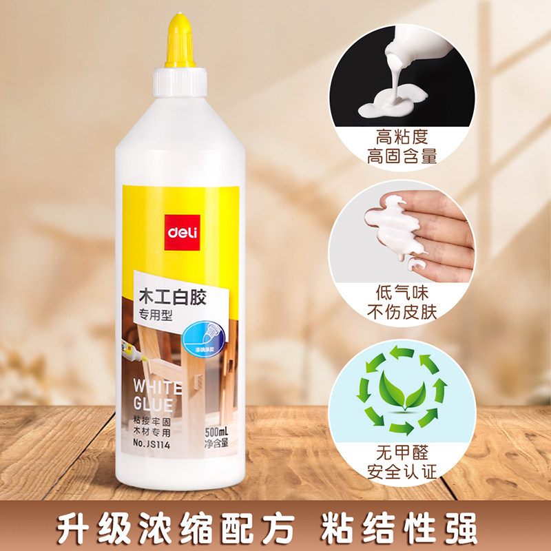 得力木工胶水粘木头专用强力粘贴家具木材开裂通用修复实木地板椅子凳子桌子免打孔免钉透明白乳胶粘合剂快干