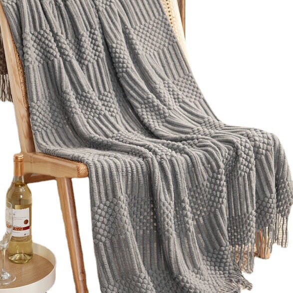 北欧纯色泡泡毛线毯搭毯空调毯沙发毯床尾毯秋冬午睡办公室盖腿毯
