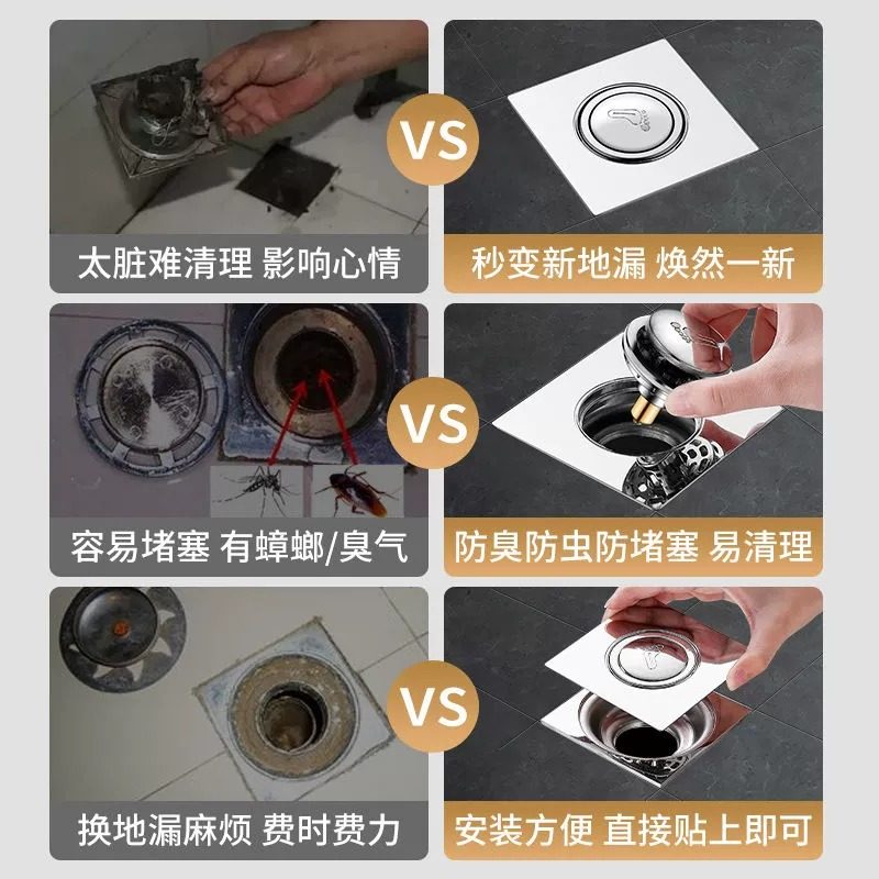 不锈钢地漏过滤网方形厕所地漏毛发过滤网防堵塞头发卫生间地漏盖