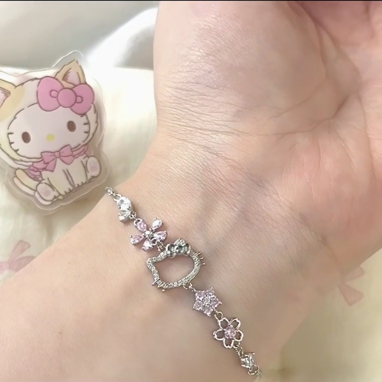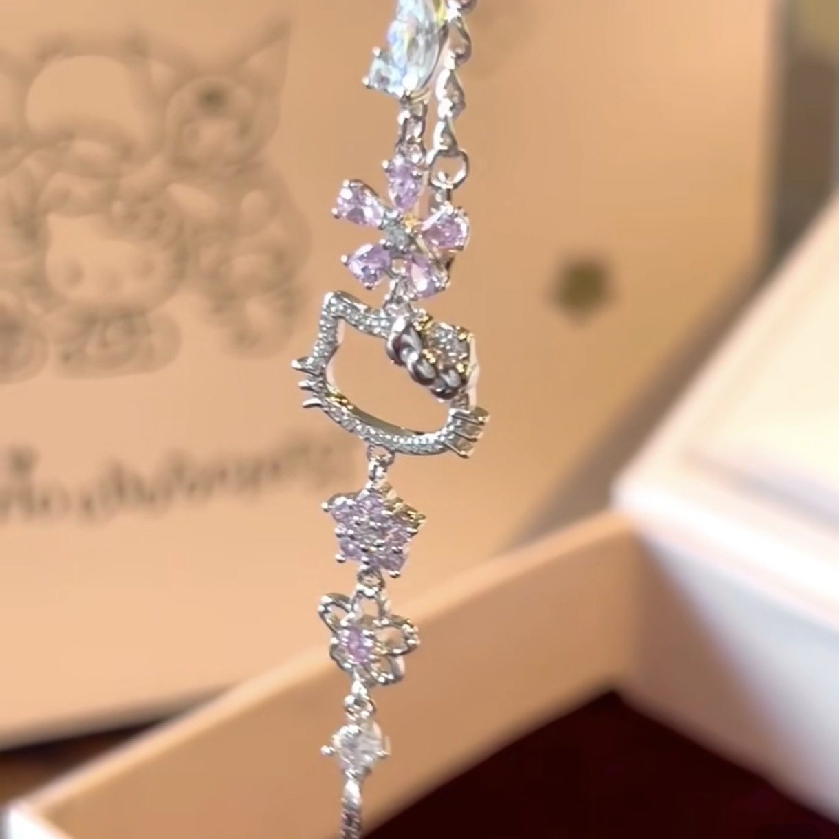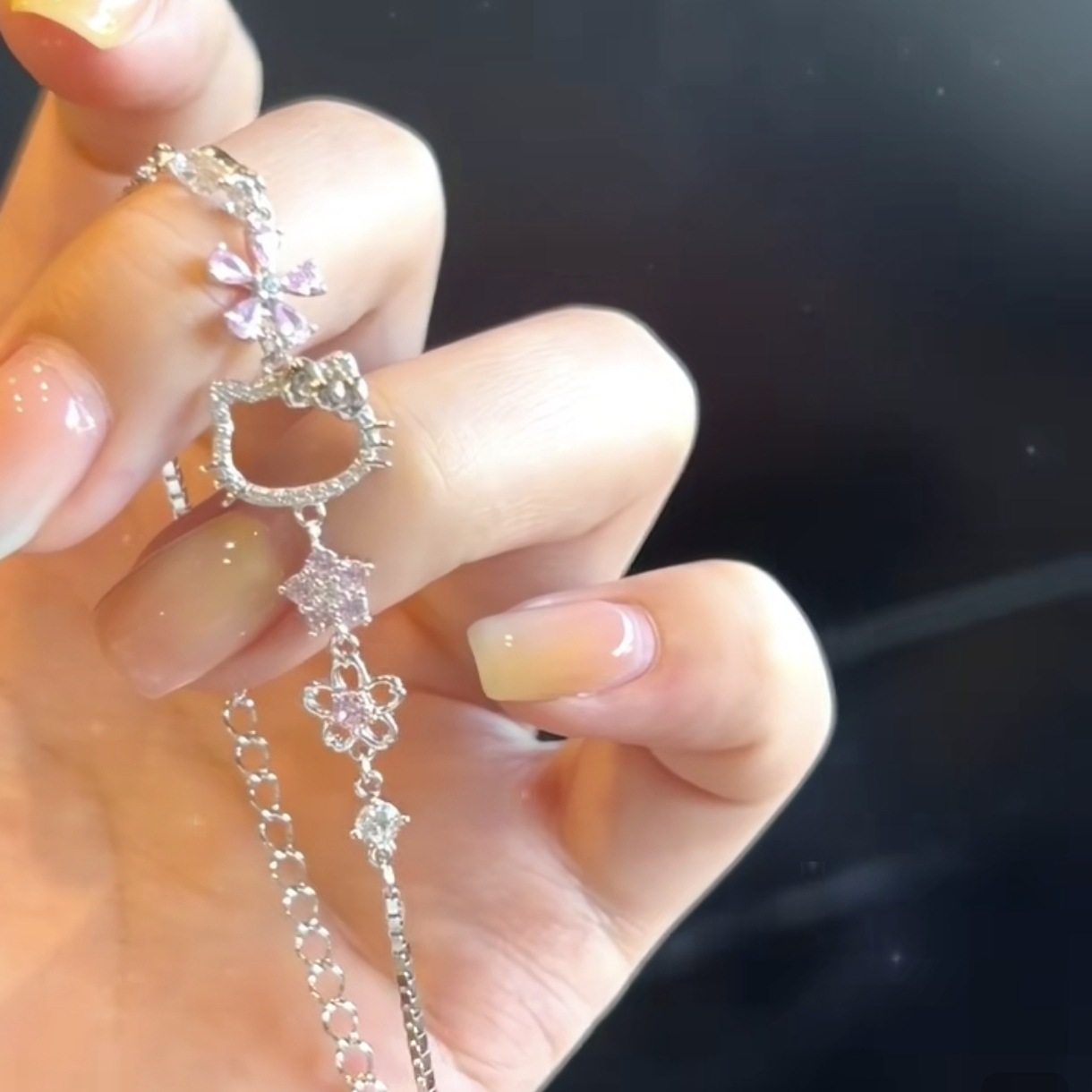 新款时尚猫咪镶锆石个性手链女轻奢小众高颜值可爱手饰礼物配
