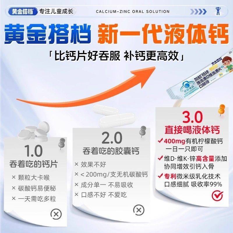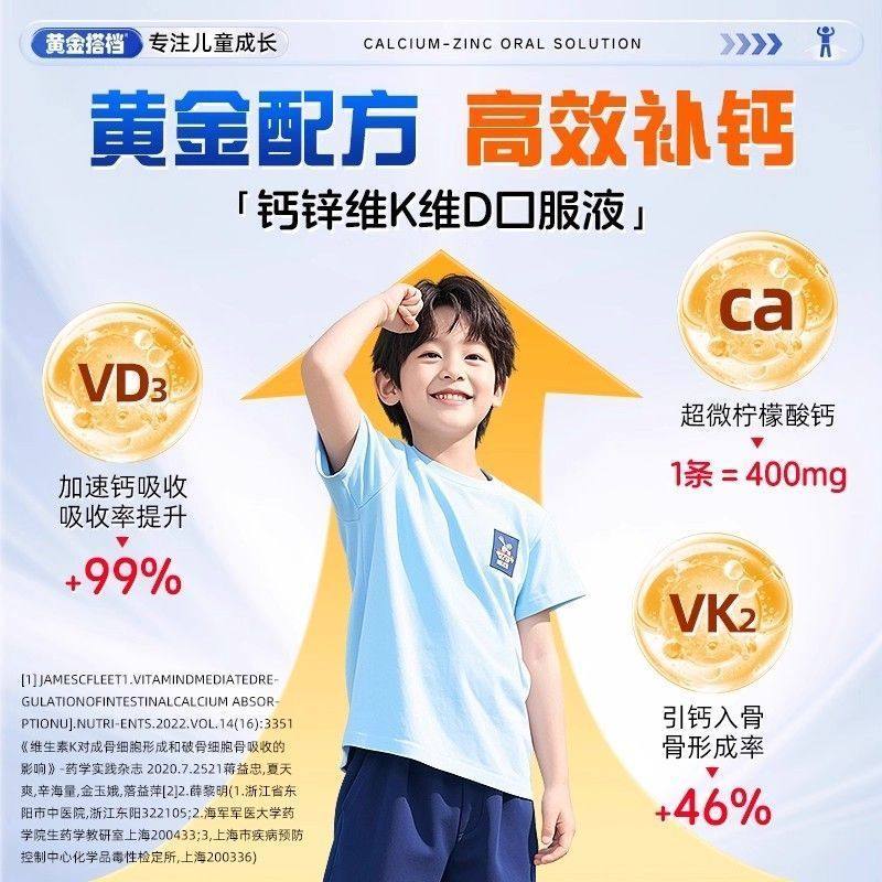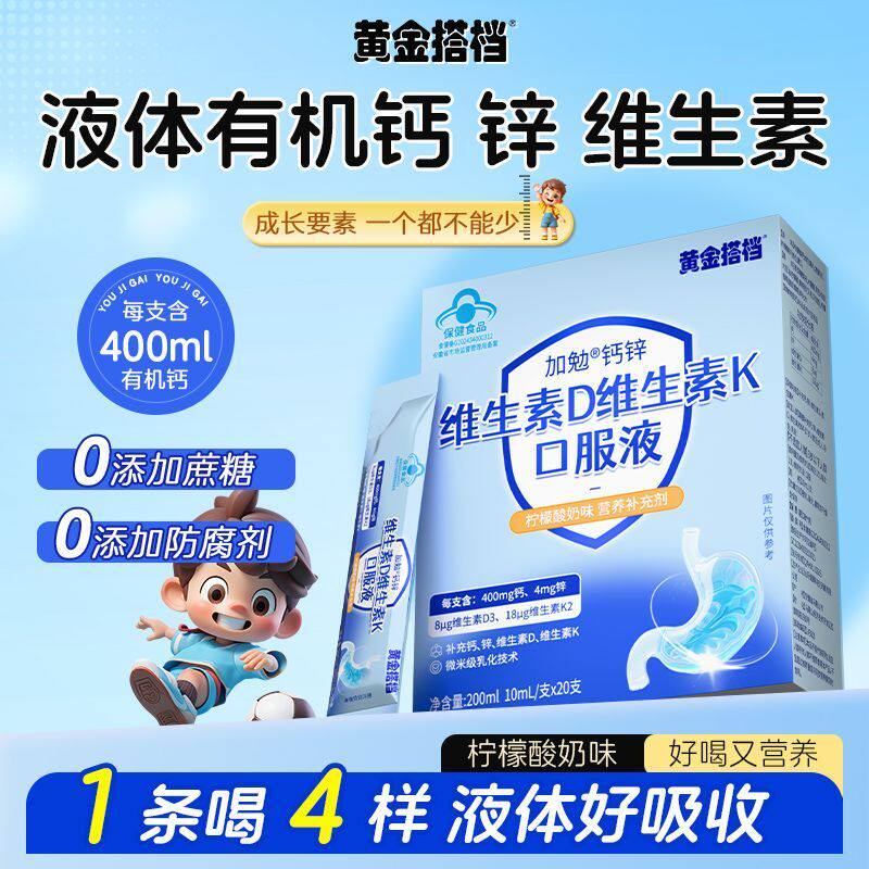 黄金搭档儿童钙铁锌口服液200ml直饮包液体钙柠檬酸钙补钙成长