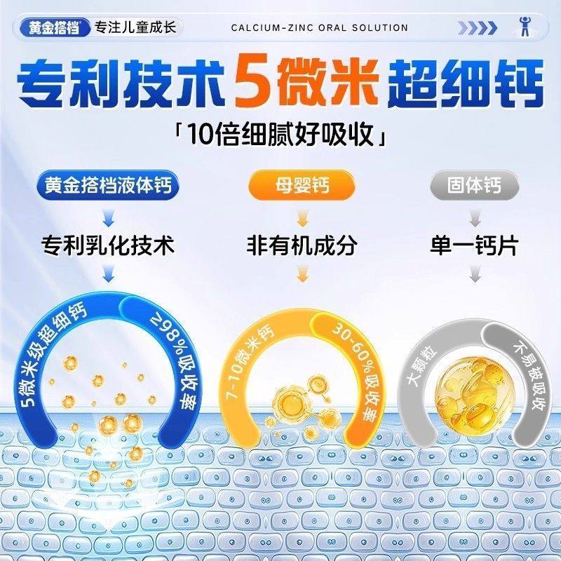 黄金搭档儿童钙铁锌口服液液体钙补钙葡萄糖酸钙非赖氨酸镁口服液