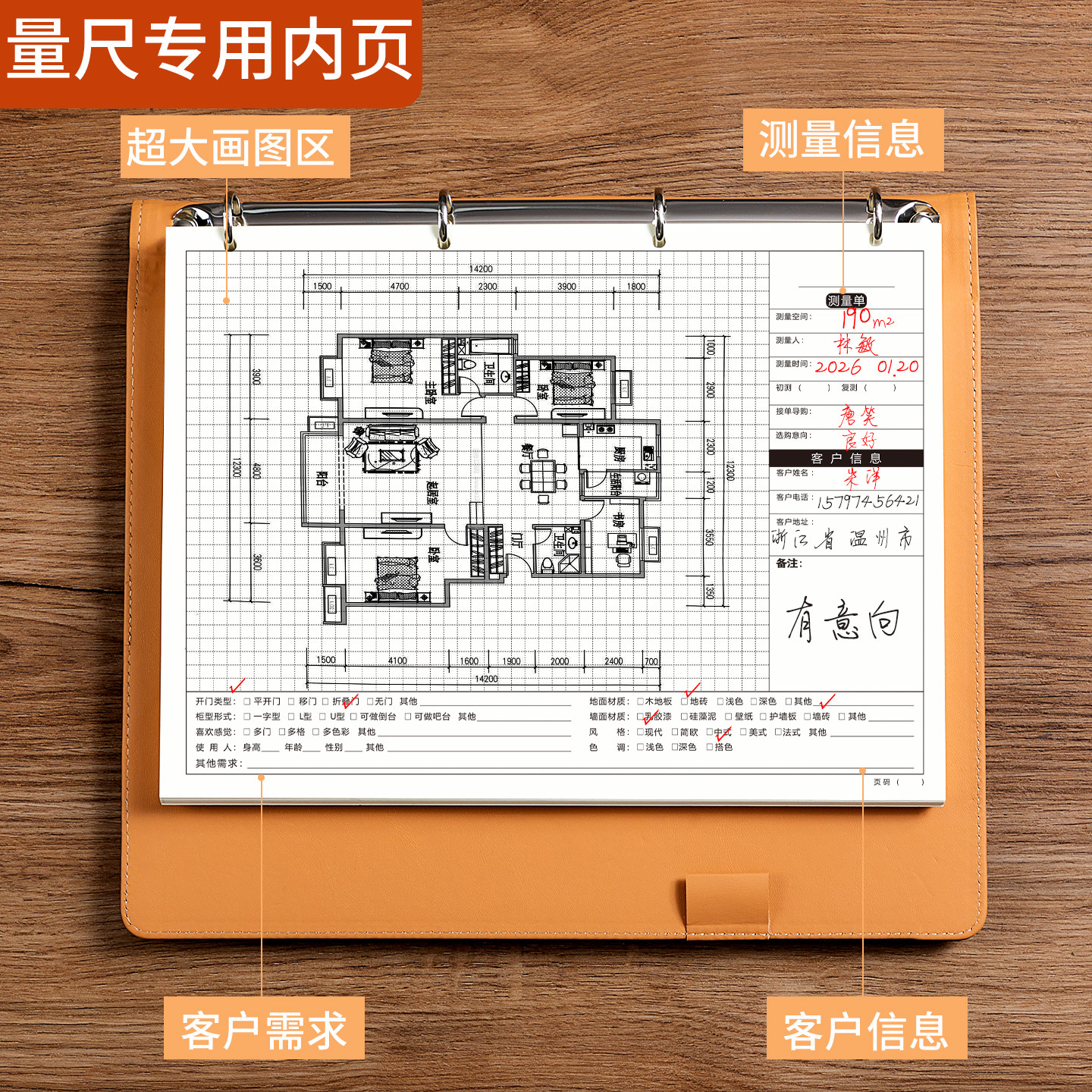量尺本室内设计师专用测量活页A4全屋定制装修绘图量房笔记本子门窗设计画施工草图用网格方格手绘量房本定制