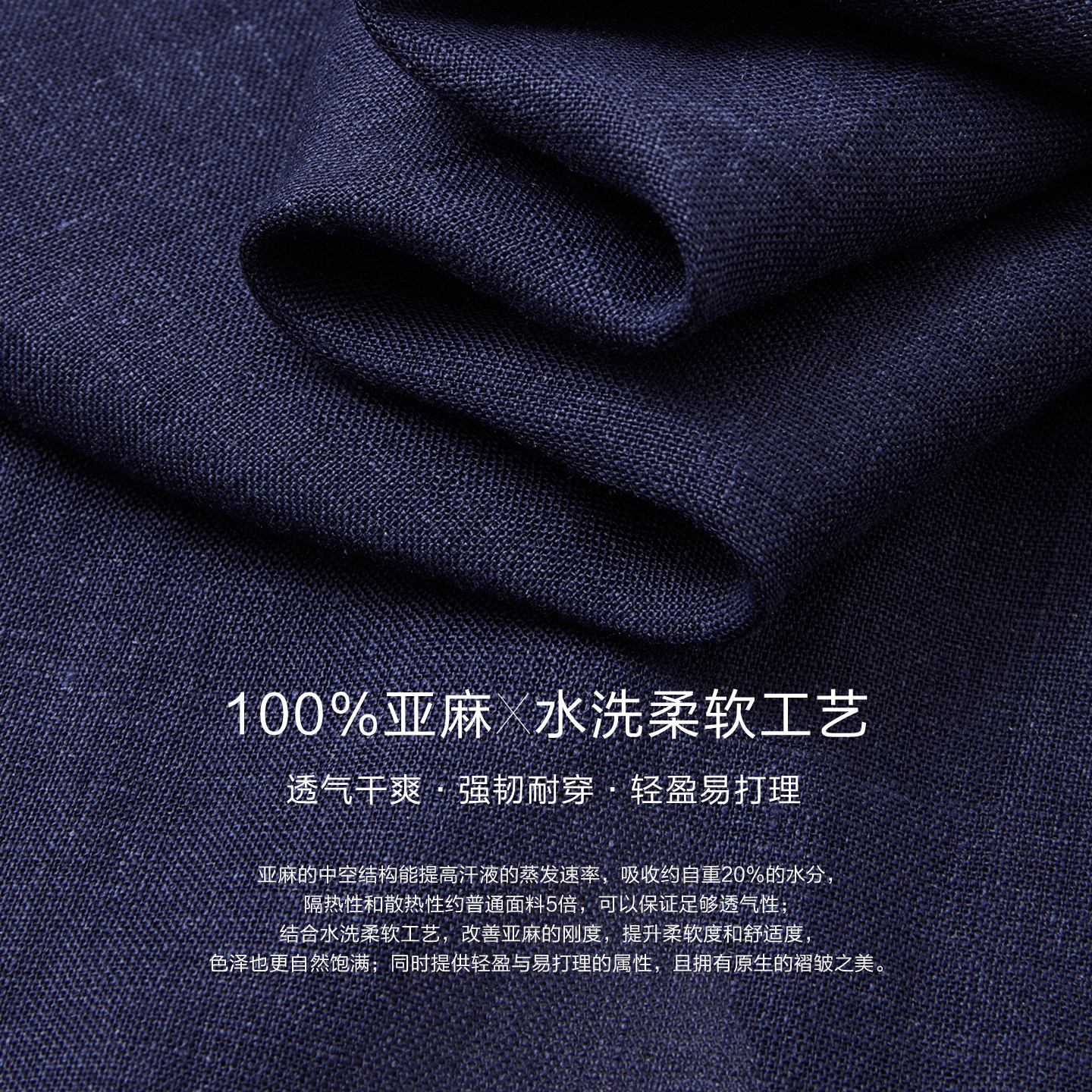 100%亚麻 水洗柔软工艺 轻盈易打理