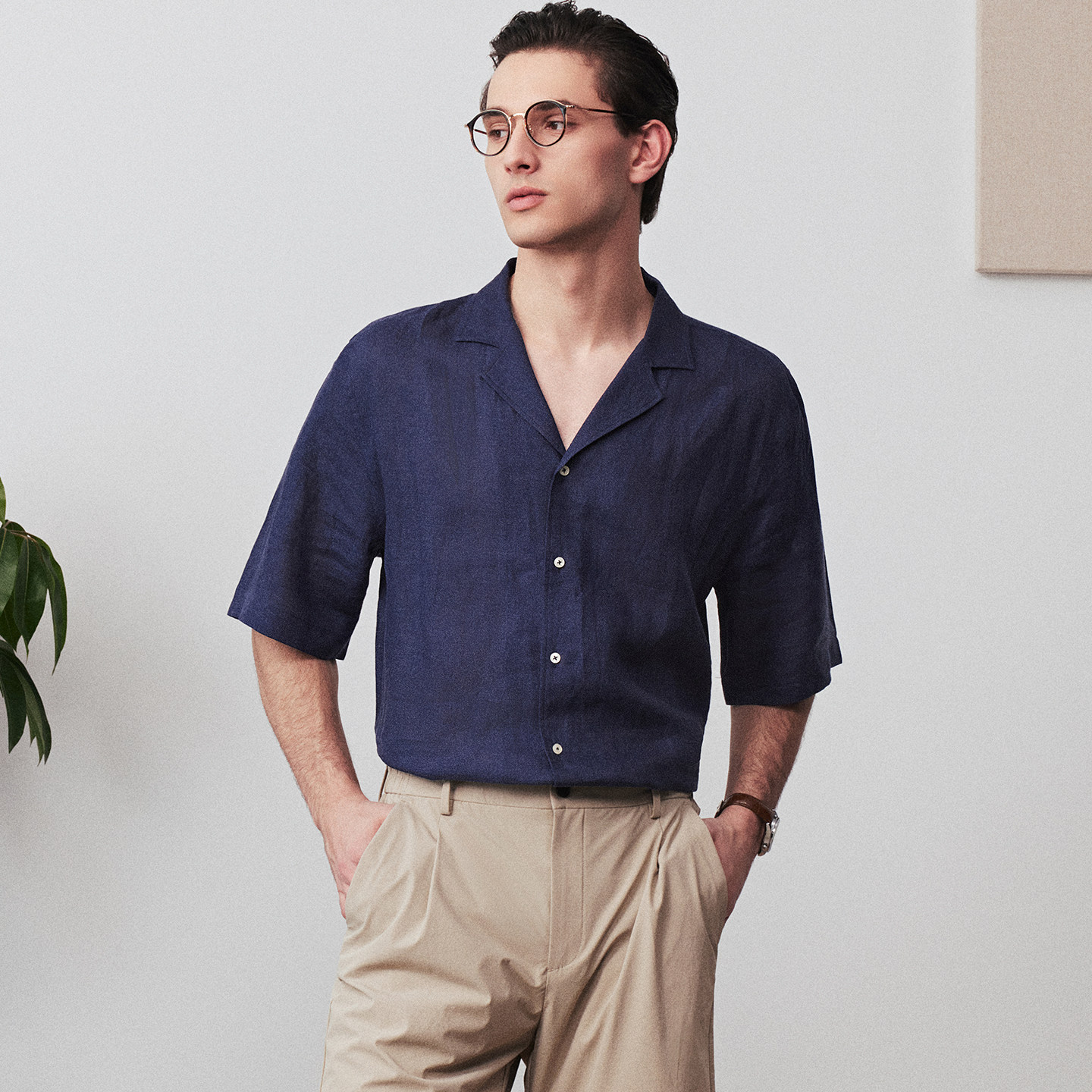 【纯亚麻】柏品易打理短袖衬衫男秋基础休闲古巴领宽松度假风衬衣