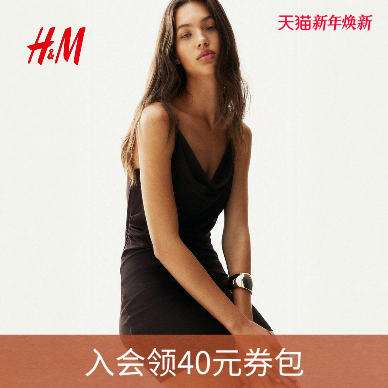 HM女装背心吊带连衣裙2025年夏季新款垂褶网纱吊带气质裙1291613