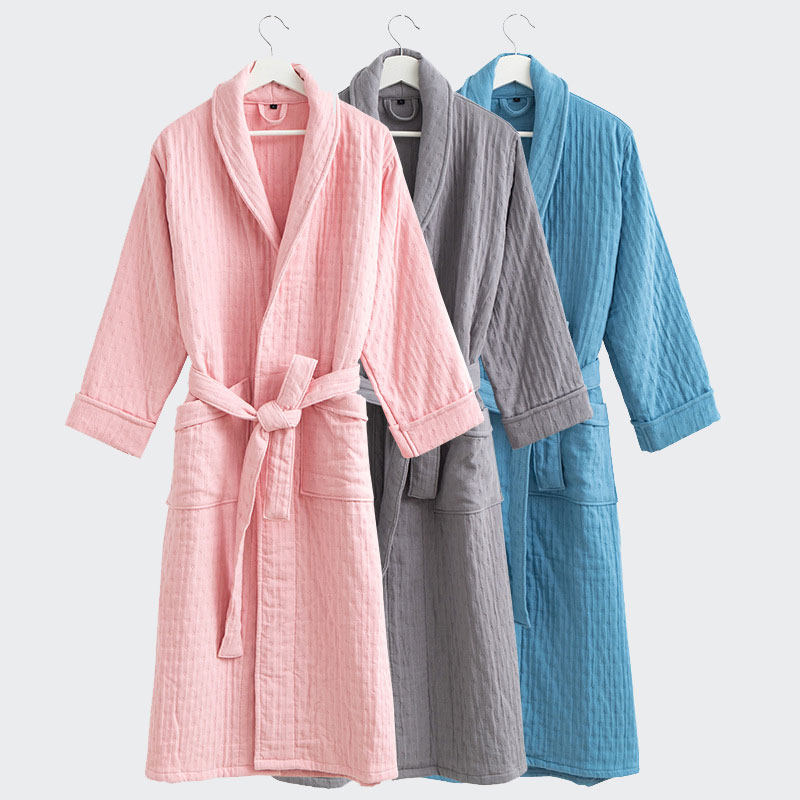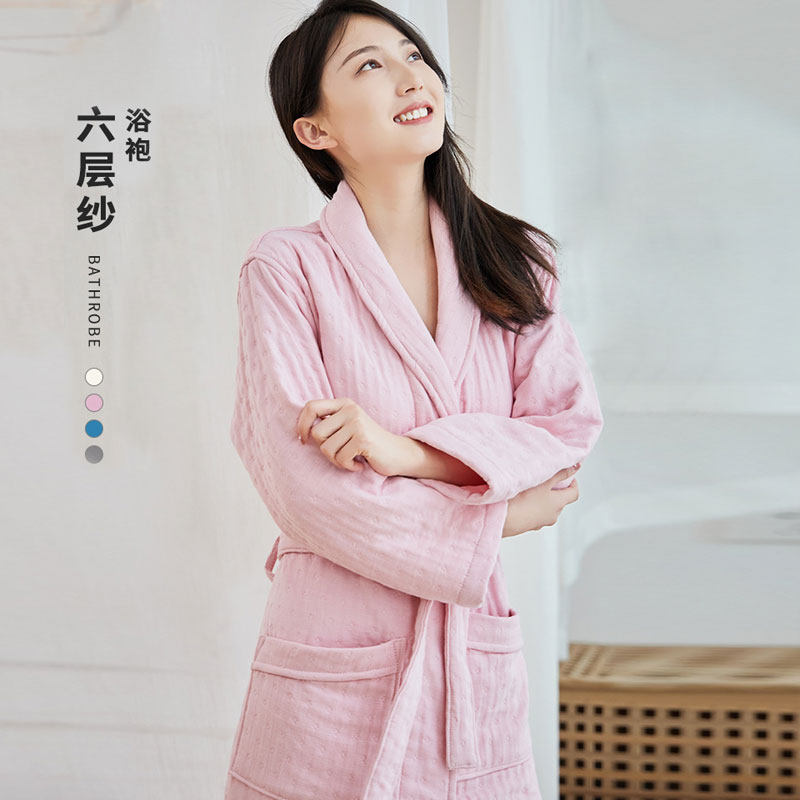 如奕纯棉浴袍六层纱布吸水速干男女全棉大人浴衣四季通用成人睡袍