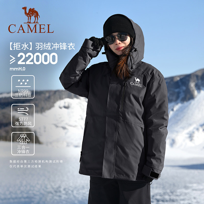 骆驼3514冲锋衣女三合一羽绒服黑色加厚外套男冬季户外防水登山服