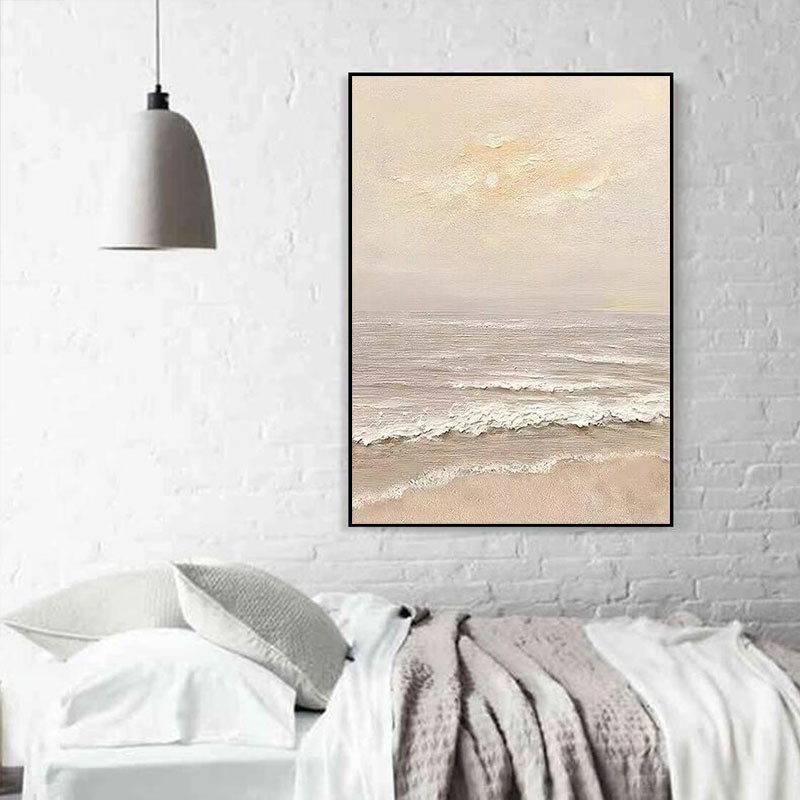 纯手绘油画轻奢奶油风景客厅背景墙现代装饰画海景日出风卧室壁画